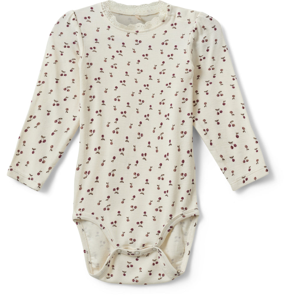 Gør garderoben klar til de mindste med Sofie Schnoor Aop Cherry DicteSB Bodystocking. Denne charmerende bodystocking med lange ærmer og rund hals er fremstillet i 95% blød bomuld, sikrer komfort hele dagen. Det søde kirsebærmønster tilføjer stil, mens knappelukningen i bunden gør den praktisk ved påklædning og bleskift.