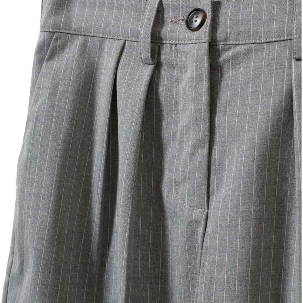- Ekstra: Lige ben, dybe plisserer foran, sidelommer, elastik bagpå og bælteløkker, enkelt randlomme bagpå