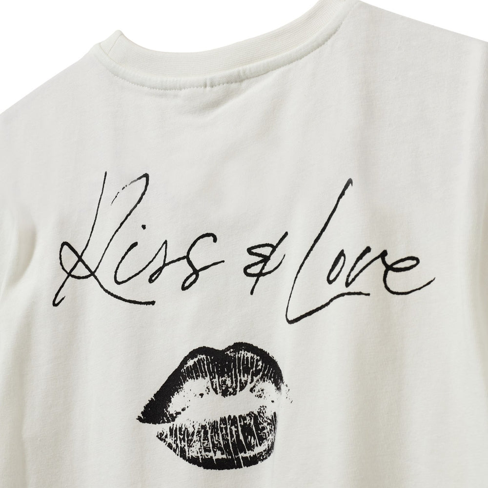 • Trykt med teksten "Kiss of love" på ryggen og en kyssende mund