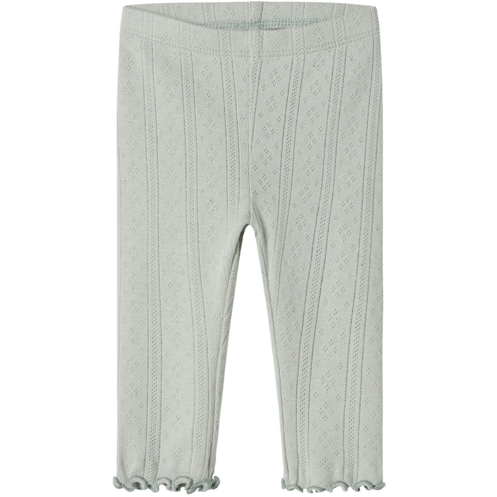 Dress dit barn komfortabelt og stilfuldt med disse Name It Aqua Gray Jsilke Leggings. De er fremstillet i blødt og strækbart ribstrik, der sikrer god elasticitet og komfort. Det klassiske, lodrette stribede mønster bidrager til et tidløst design, mens elastikken i taljen giver en perfekt pasform. Ideelle til hverdagsbrug og leg, holder disse leggings formen vask efter vask. Sikkerhedsinformation: Holdes væk fra ild.