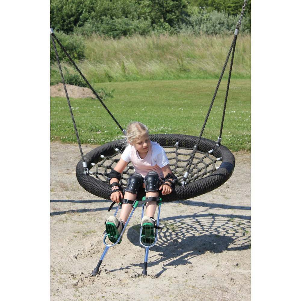 Giv dit barn en sjov og aktiv legeoplevelse med My Hood sansegynge. Denne unikke "Fuglerede"-design stimulerer barnets motorik og opmuntrer til fysisk leg og samspil. Robust konstruktion med en 35mm sortlakeret stålramme og kraftige PE-reb sikrer sikkerhed, mens de 16mm tykke ophængsreb gør installationen enkel og sikker på de fleste standard gyngestativer. Perfekt til udeleg og let at vedligeholde, er denne gyngestol en sikker vinder i enhver have, hvilket bringer glæde til familien og styrker børnenes aktivitet og trivsel.