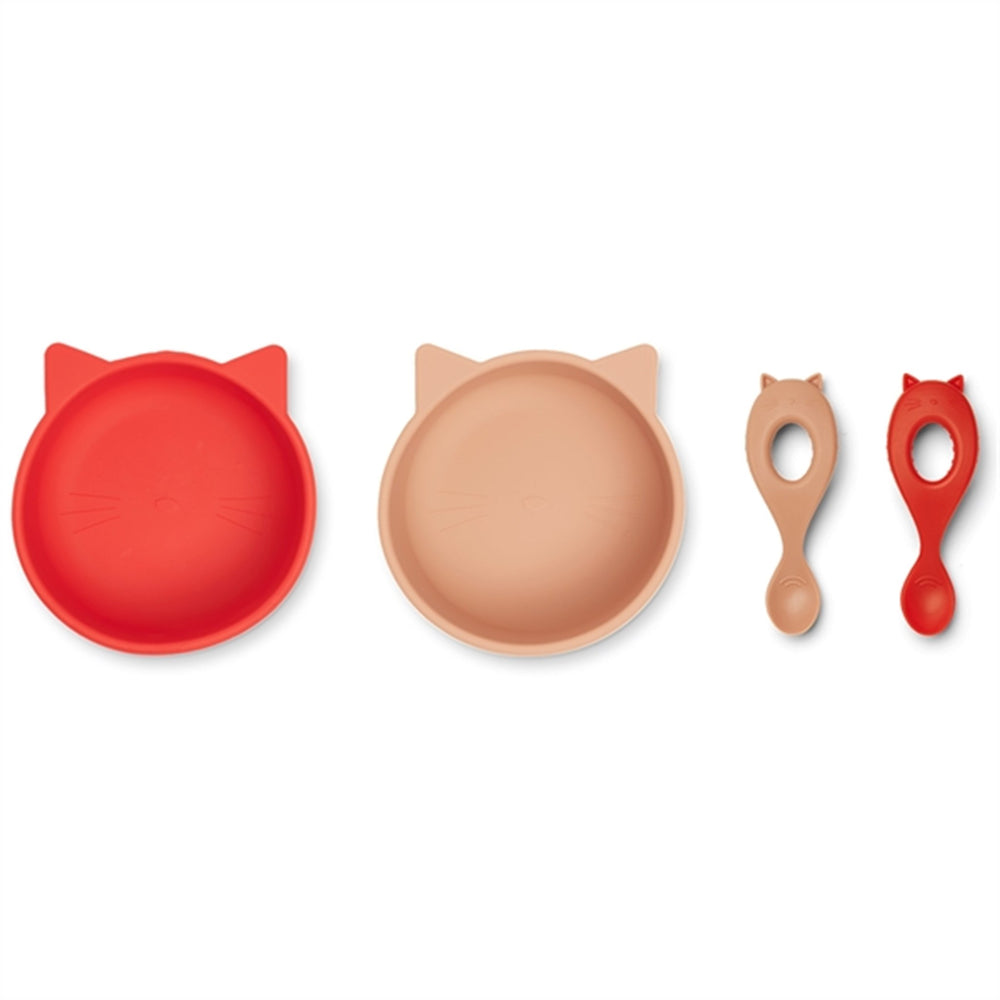 Liewood Evan Silikone Sæt 2-Pak Cat Apple Red/Tuscany Rose Mix