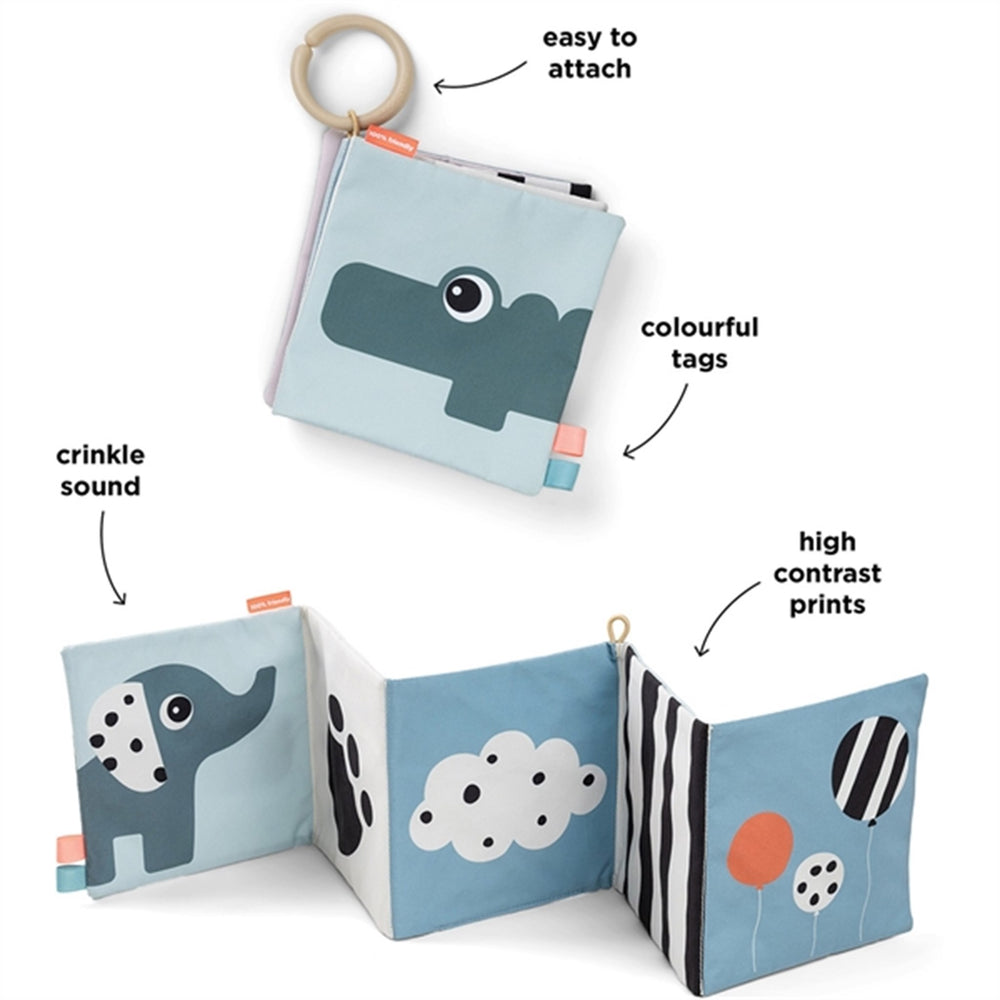 Sorte og hvide kontraster giver den nyfødte visuel stimulering, og farverige, og sjove sider stimulerer den ældre baby