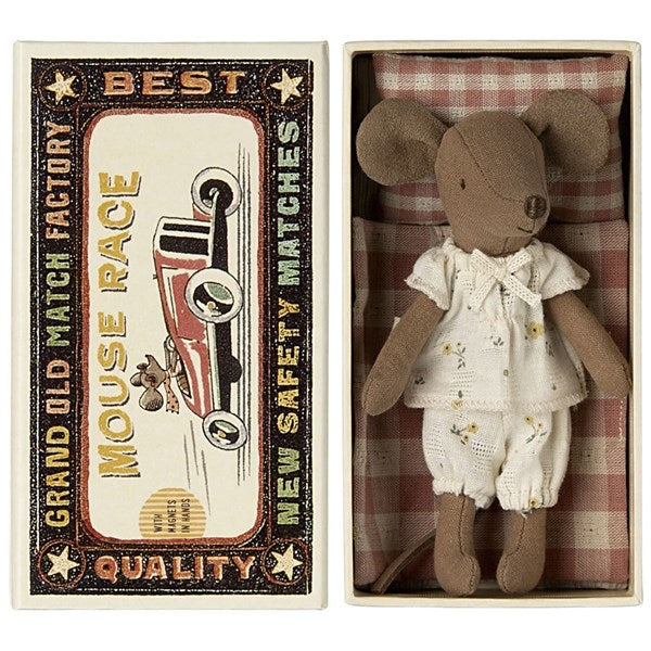 Maileg Storesøster Mus I Tændstikæske er i restordre og vil blive sendt, så snart det er på lager igen.