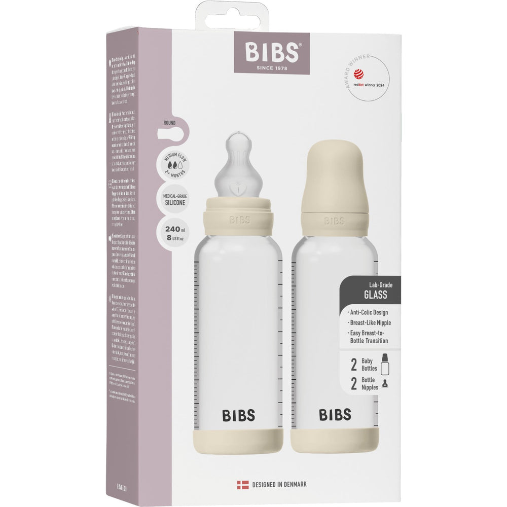 Bibs Ivory Glass Baby Flaske Round Silikone 2-Pak 240 Ml Medium Flow