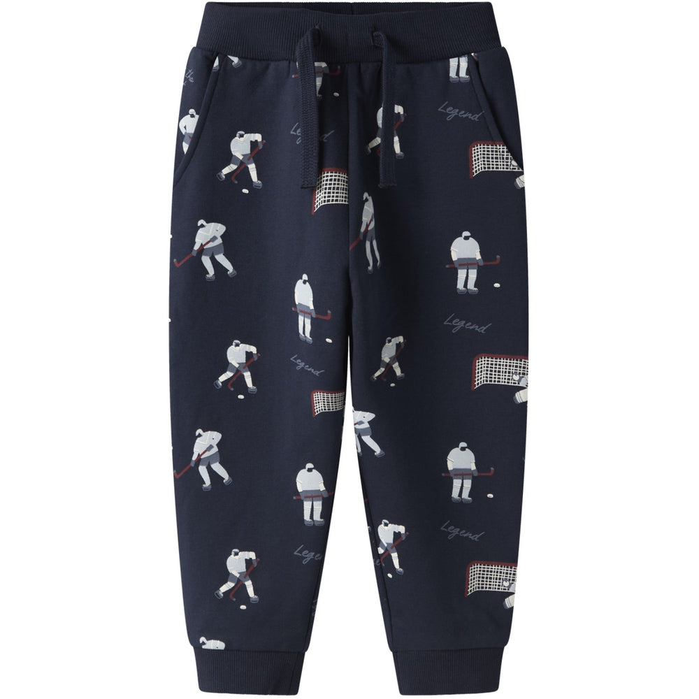 Gør hverdagen behagelig for dit barn med Name It Navy Blazer Nmmsofus Nreg Sweat Bukser. Disse joggingbukser er fremstillet i børstet sweatstof, der sikrer en blød følelse indvendigt. Med praktiske sidelommer, justerbar talje og ribkanter får dit barn både funktionalitet og stil. Det gentagne mønster tilføjer et legende touch, mens den almindelige pasform og faste snøre sikrer optimal komfort og pasningsmuligheder. Ideel til både leg og afslapning.