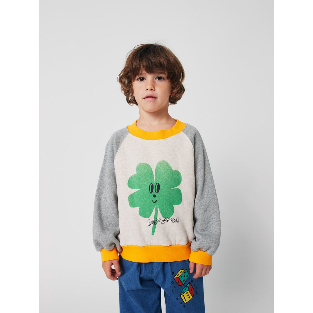 Bobo Choses Heather Grey Lucky Clover Ranglan Sweatshirt