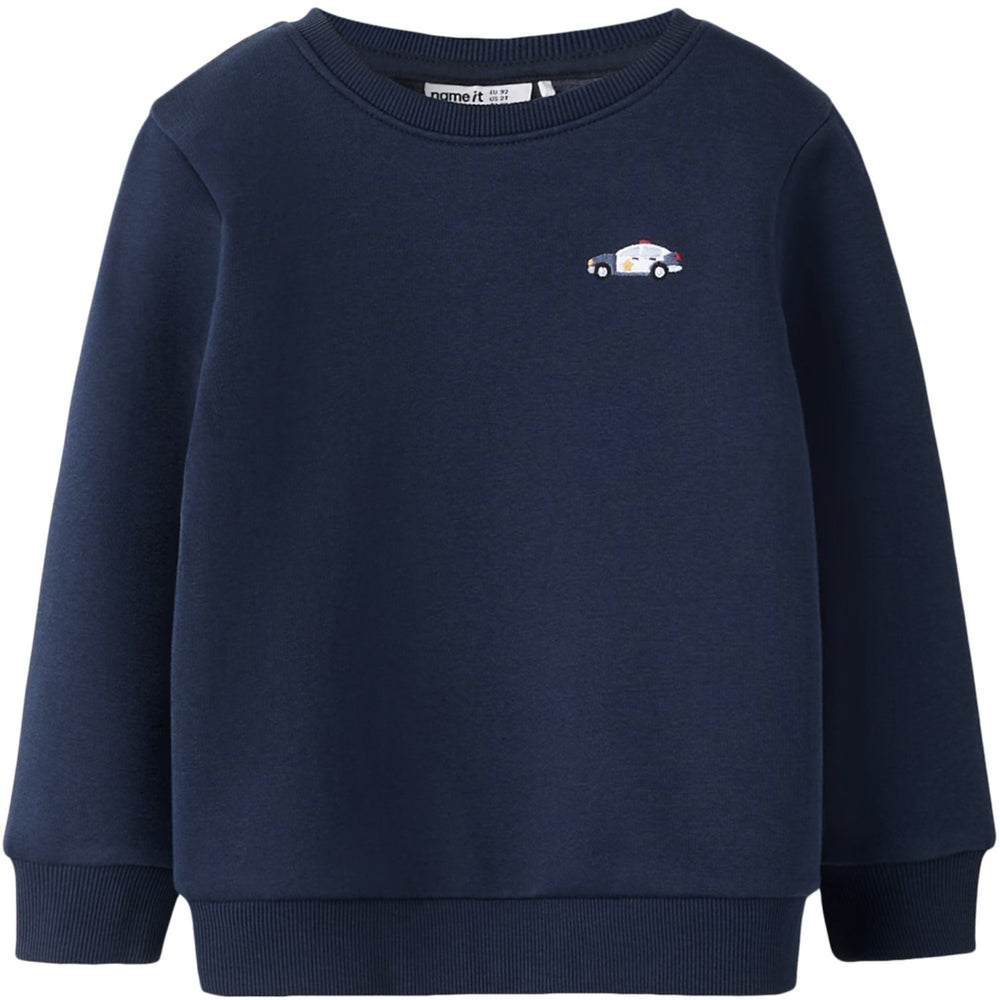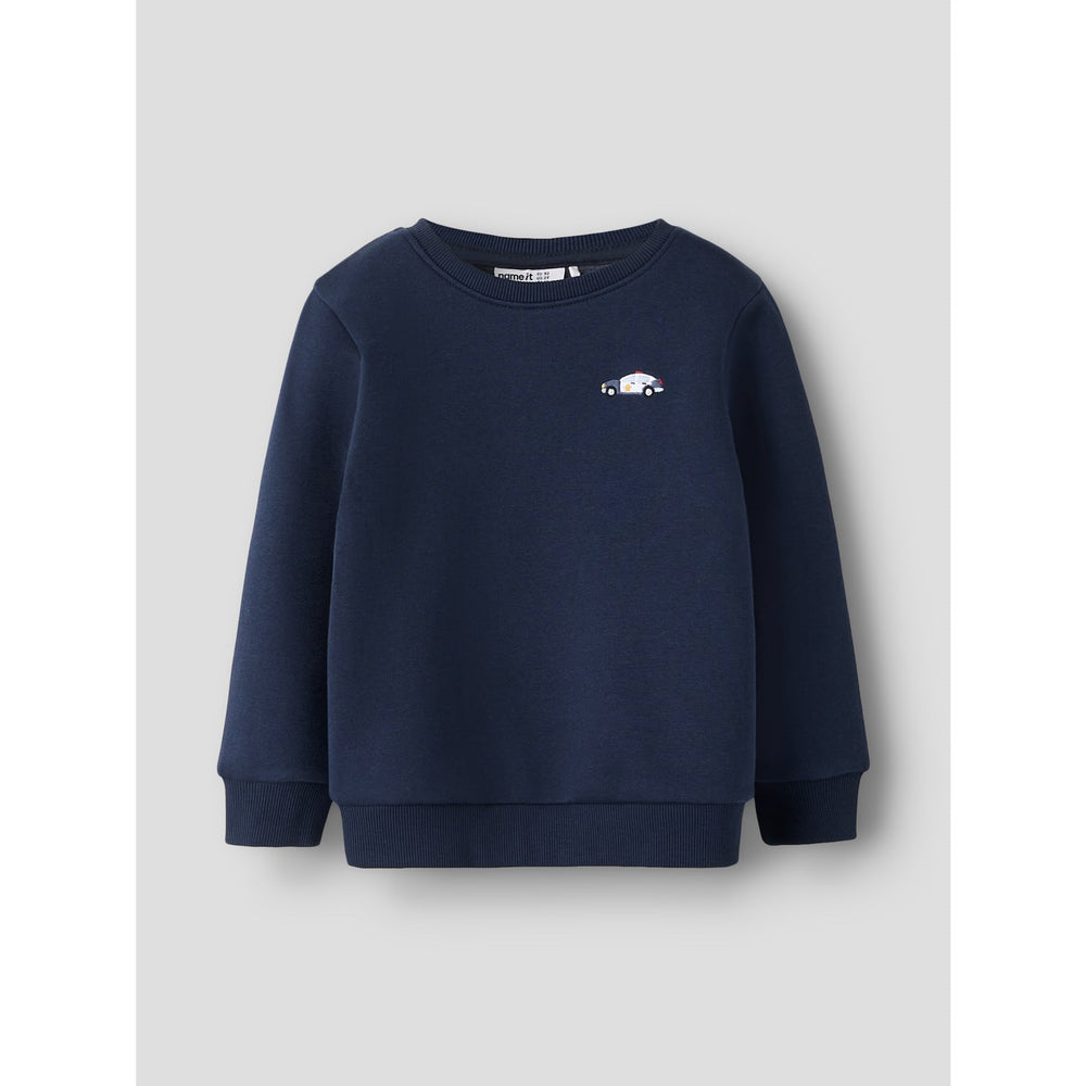 Gør hverdagen lidt sjovere med Name It Navy Blazer Nmmopa Ls Swe Bru sweatshirt. Denne sweatshirt er fremstillet i blødt børstet stof med en lun inderside, perfekt for kølige dage. Designet er klassisk med rund hals og lange ærmer, komplementeret af stilfulde ribkanter. Pigmentprintet tilføjer en fin detalje, der holder godt på farven efter gentagen vask. En almindelig pasform sikrer komfort hele dagen for dit barn. Sweatshirten kombinerer funktionalitet med et cool look, og bliver hurtigt en favorit i barnets garderobe.