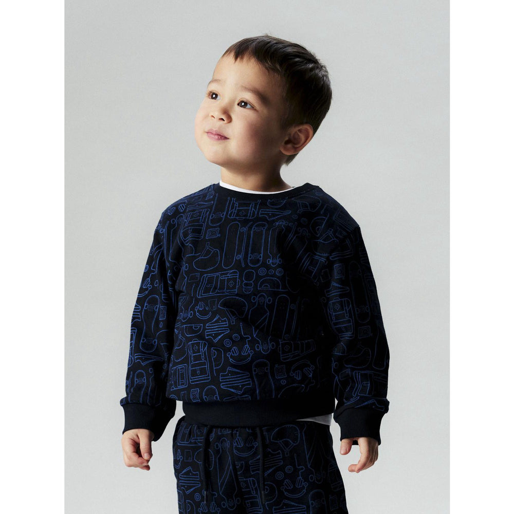 Giv dit barns garderobe en opgradering med denne stilfulde sweatshirt. Perfekt til både legepladsen og skoledagen, tilbyder denne sweatshirt en blød børstet inderside for maksimal komfort og varme. Med en klassisk rund hals og lange ærmer er den designet til at holde dit barn både komfortabelt og trendy. Det almindelige fit sikrer en god pasform, mens ribkanterne tilføjer en fin detalje. Den er fremstillet i blødt bomuld og prydet med et gentaget mønster, der giver den et unikt præg.