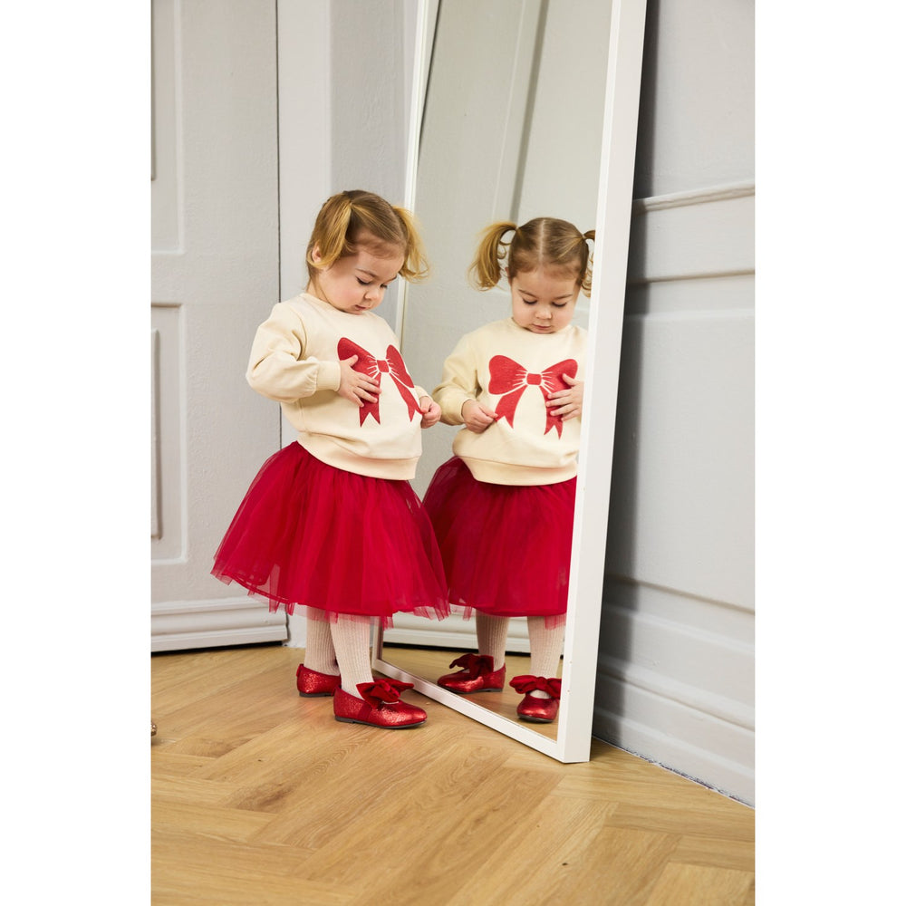 Denne charmerende sweatshirt fra THE NEW Siblings byder på et unikt glimmersløjfeprint, som tilføjer et legende touch til børnegarderoben. Fremstillet i et blødt og komfortabelt materiale, sikrer den en afslappet pasform, der giver plads til bevægelse. De ribstrikkede manchetter og bundkant øger elasticiteten og komforten, ideel til aktive børn. Sweatshirten er tilgængelig i to attraktive farver, der let kan kombineres med andet tøj for et stilfuldt look.