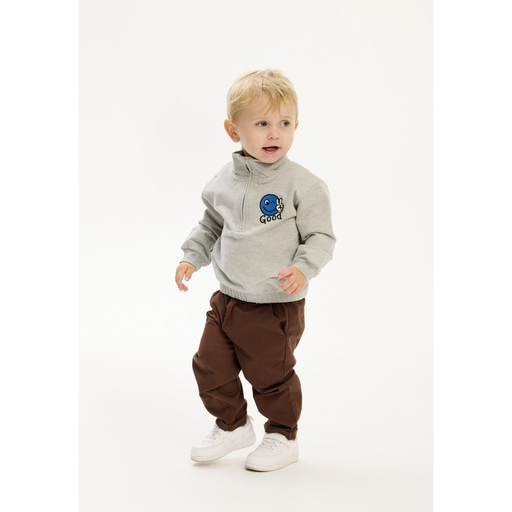 Denne langærmede, oversized sweatshirt fra THE NEW Siblings tilbyder både stil og komfort til børn. Den høje krave med lynlås sikrer behagelig varme, mens det broderede design af en blå smiley og teksten "GOOD" tilføjer en legesyg detalje. Ribkanterne ved ærmerne og sømmen garanterer en fremragende pasform og bekvemmelighed. Fremstillet i blødt, slidstærkt materiale, er denne sweatshirt ideel til både skole og fritidsaktiviteter.