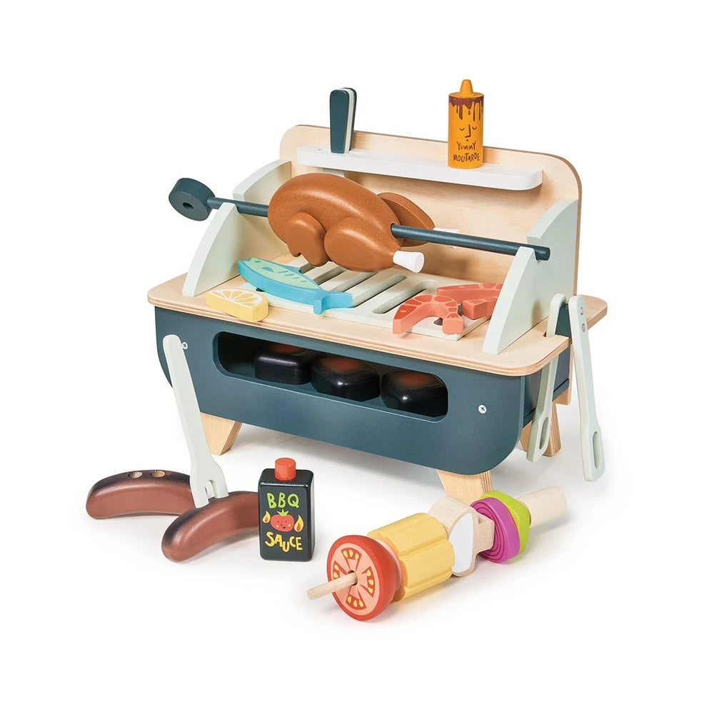 Oplev glæden ved udendørs eventyr med Tender Leaf Bbq Grillsæt, et sikkert og underholdende legetøjsgrill sæt i træ. Designet til børn fra 3 år og opefter, dette sæt fremmer udviklingen af sociale kompetencer og kreativ tænkning gennem rollespil. Sættet er let at rengøre og kan nemt pakkes væk, idet alt tilbehør kan opbevares indeni grillen. Med dette grillsæt får dit barn muligheden for at udforske en verden af fantasi, samtidig med at det styrker familiens bånd gennem leg.