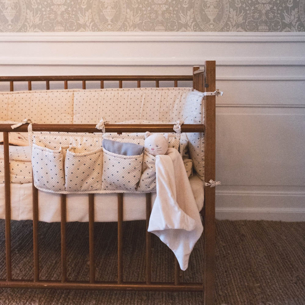 That's Mine Lots Of Love Sky Louis Sengelomme er den perfekte løsning for opbevaring ved sengekanten. Designet til bekvemmelighed og nem adgang til nattetidens nødvendigheder som bamser og småbøger, hjælper denne sengelomme med at holde børneværelset ryddeligt og organiseret. Fremstillet i holdbart materiale, der er let at rengøre, sikrer dette produkt, at forældre får en bekymringsfri oplevelse, mens børnene nyder komfort og sikkerhed. Matcher let med forskelligt sengetøj og tilbehør for en stilfuld finish i ethvert børneværelse.
