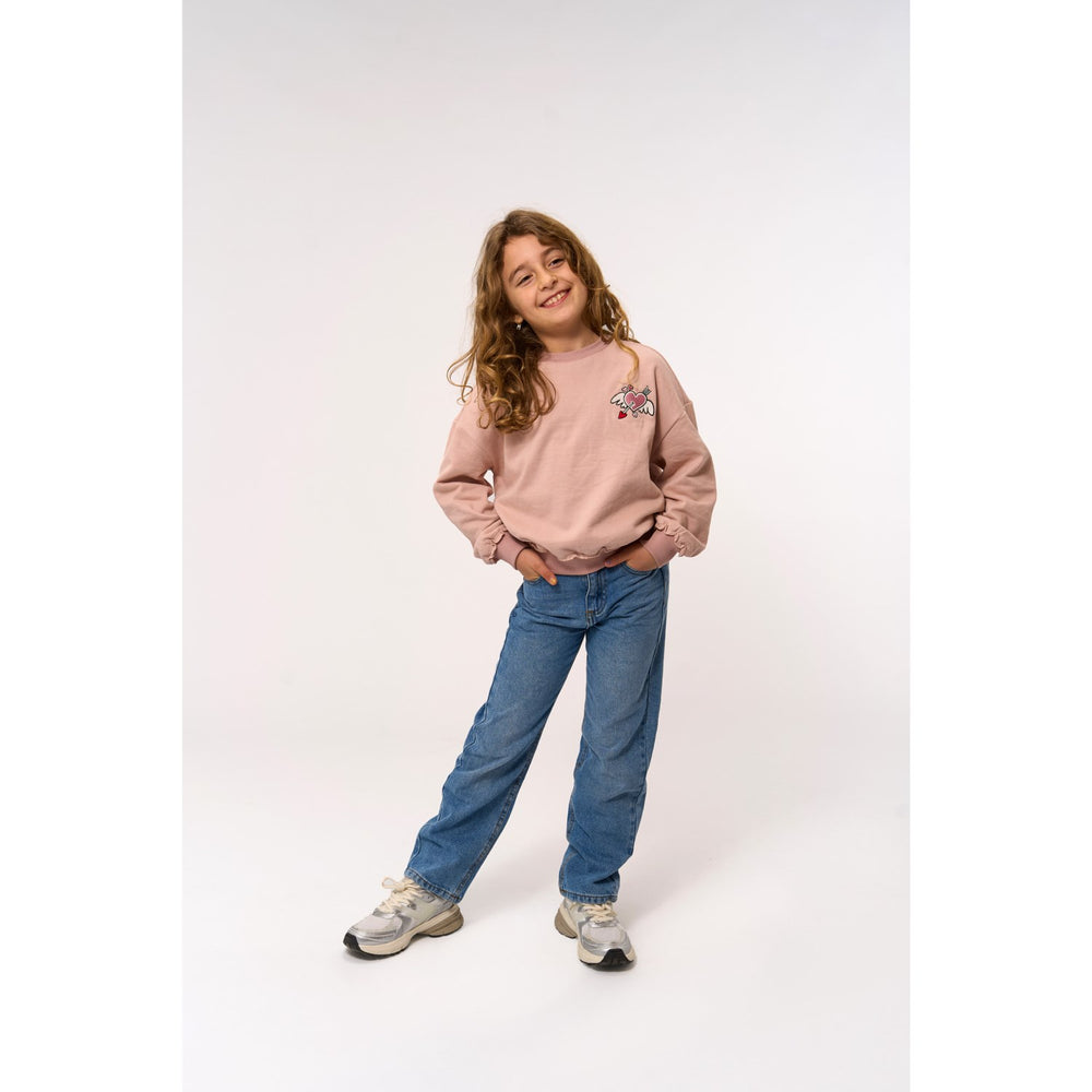 Klæd dit barn i denne charmerende oversized sweatshirt fra THE NEW, prydet med et kreativt hjerteprint med vinger. Dette behagelige tøjstykke er fremstillet af blødt materiale og kommer med praktiske ribmanchetter samt en komfortabel halsudskæring, der gør den ideel til aktiv leg og afslapning. Det farverige tryk foran tilføjer en sjov detalje, gør hverdagsoutfits livlige. Desuden er sweatshirten GOTS Organic certificeret, hvilket understreger kvaliteten og omsorgen bag produktionen.