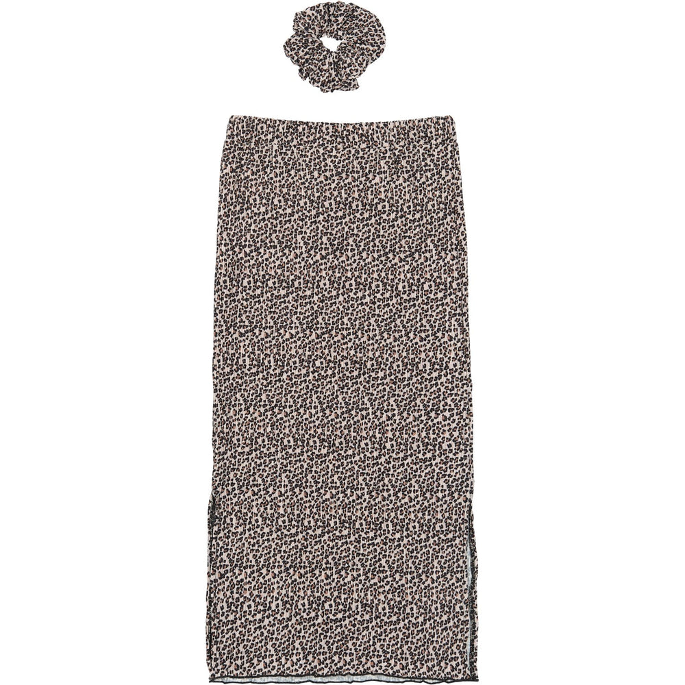 Opdag den charmerende lange nederdel fra THE NEW, fremstillet i blødt, plisseret stof med et iøjnefaldende leopardprint. Denne nederdel har en slids på siden, der giver fri bevægelse og gør den ideel til både hverdagsbrug og specielle anledninger. Komplet med en matchende scrunchie, er denne nederdel ikke kun stilfuld, men også praktisk og komfortabel. Perfekt til at kombinere med en enkel bluse eller en varm cardigan for et fuldendt look.