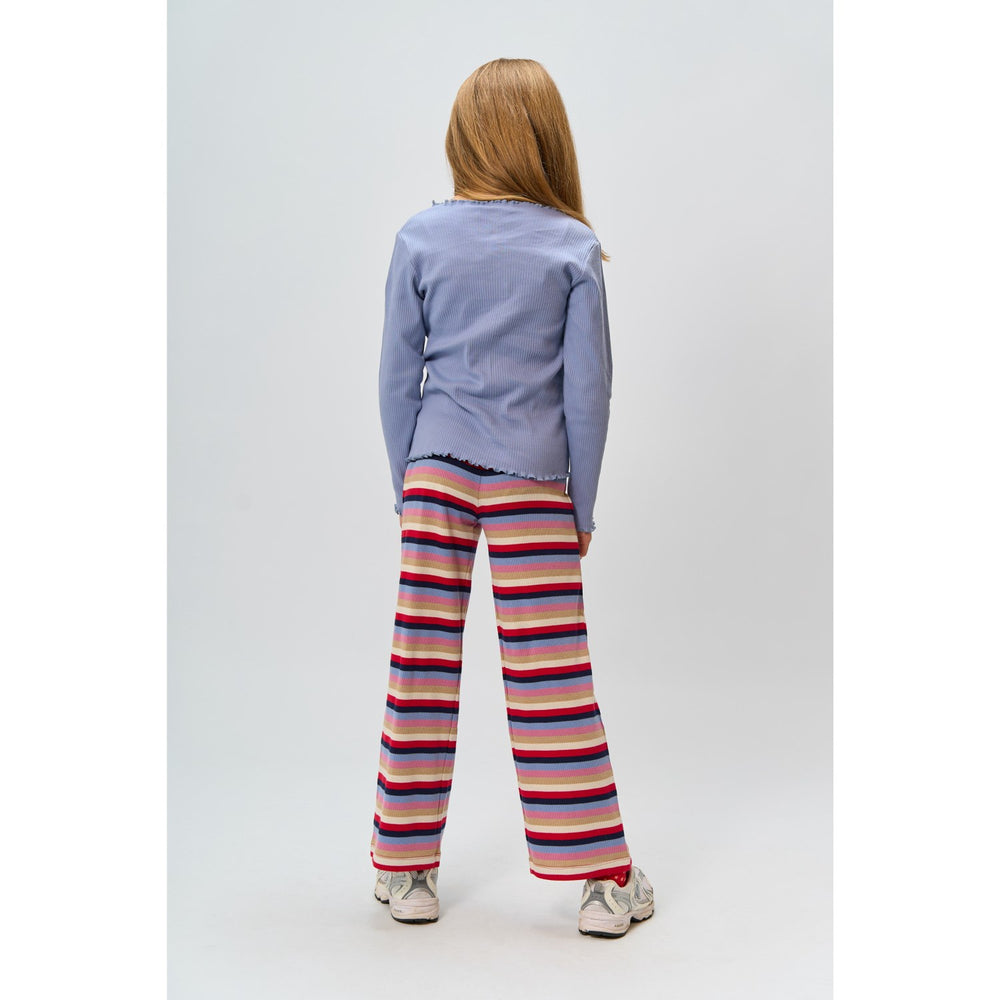 Disse charmerende bukser fra THE NEW er perfekte til små piger, der elsker farver og komfort. Fremstillet i en blød, ribstrikket kvalitet, sikrer det strækbare materiale både holdbarhed og bevægelsesfrihed. Den vandrette, flerfarvede stribning tilføjer et frisk pust til enhver garderobe, mens den brede elastik i taljen garanterer en god pasform hele dagen. Ideelle til hverdagsbrug eller en festlig lejlighed i kombination med en matchende rib-T-shirt for et fuldendt look.