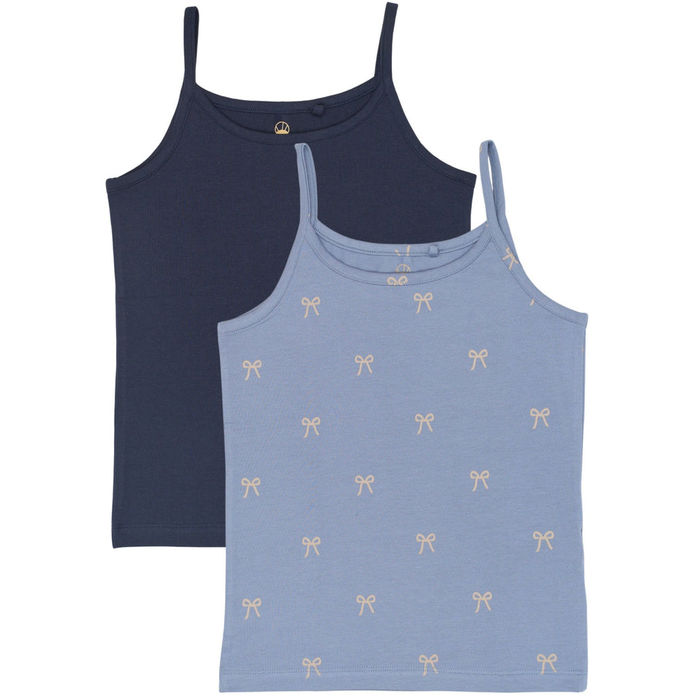 Gør garderoben klar til din lille én med The New Navy Blazer Strop Top 2-Pak. Dette sæt inkluderer en klassisk ensfarvet top og en charmerende top med print. Designet med tynde stropper og en kropsnær pasform, sikrer disse undertrøjer optimal komfort og bevægelsesfrihed. Fremstillet af GOTS-certificeret økologisk bomuld, er de både bløde og sikre for børns følsomme hud. Perfekte som et komfortabelt basislag under tøj til alle årstider.