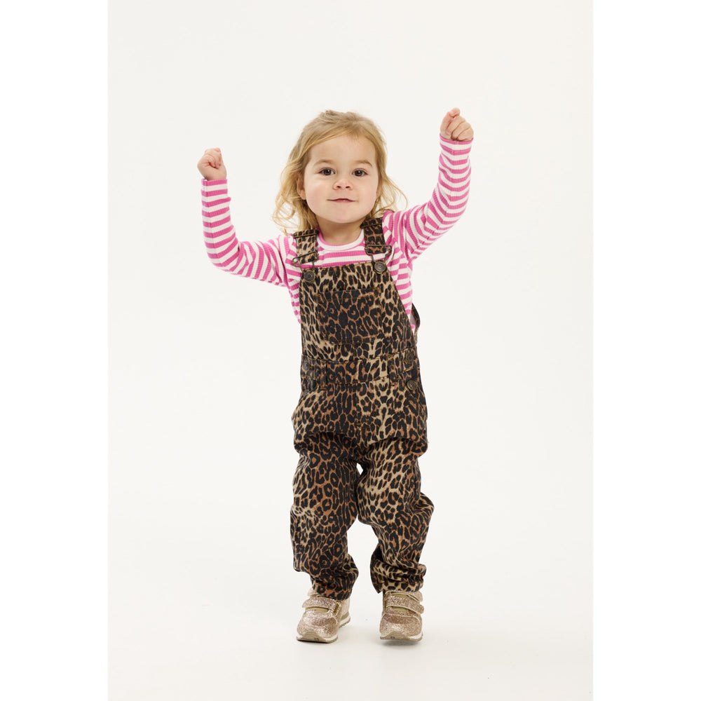 Denne par denim smækbukser fra THE NEW Siblings i farven Feather Gray med leopardprint kombinerer praktisk design med moderne stil. De justerbare stropper og knapper sikrer en perfekt tilpasning, mens bæltestropper og knapper på hver side af taljen øger funktionaliteten. Forlommer og en praktisk brystlomme tilføjer både stil og anvendelighed til enhver børnegarderobe.