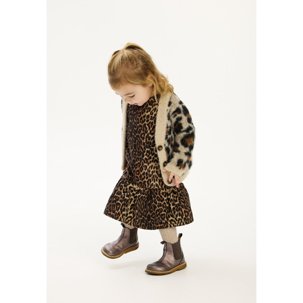Giv dit barns garderobe et stilfuldt løft med denne charmerende cardigan fra THE NEW. Skabt i bløde toner med et iøjnefaldende leopardmønster, kombinerer den funktionalitet med mode. En afslappet pasform sikrer komfort hele dagen, mens de praktiske knapper foran gør det let for dit barn at tage cardiganen på og af. Ribkanterne ved ærmerne forbedrer pasformen og tilføjer en fin detalje. Denne cardigan er velegnet til både leg og særlige anledninger, og kan miks'es med en hverdagskjole eller casual bukser for et fuldendt look.