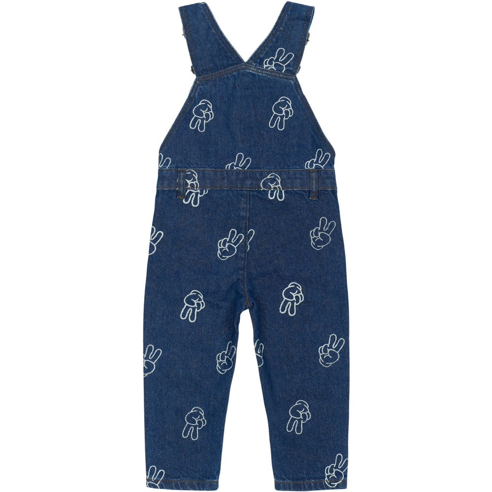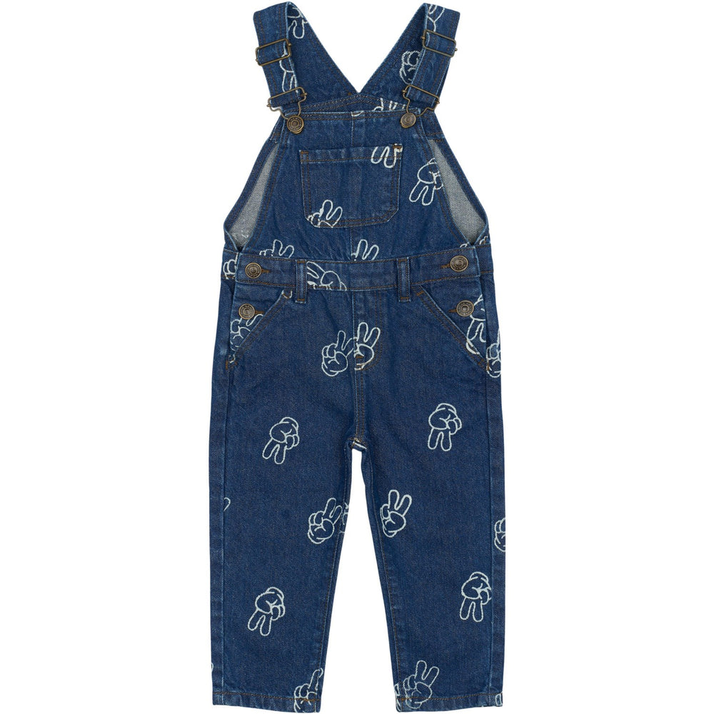 Disse charmerende denim smækbukser er både stilfulde og funktionelle, perfekte til børns hverdagslege. Det tiltalende all-over print med små frække fredstegn tilføjer en sjov vinkel til det klassiske denim. Med nemt justerbare skulderstropper og flere praktiske lommer tilbyder disse bukser en komfortabel og alsidig pasform. Designet er ideelt til både udendørs eventyr og rolig indendørs leg, hvilket gør dem til et must-have i enhver børnegarderobe.
