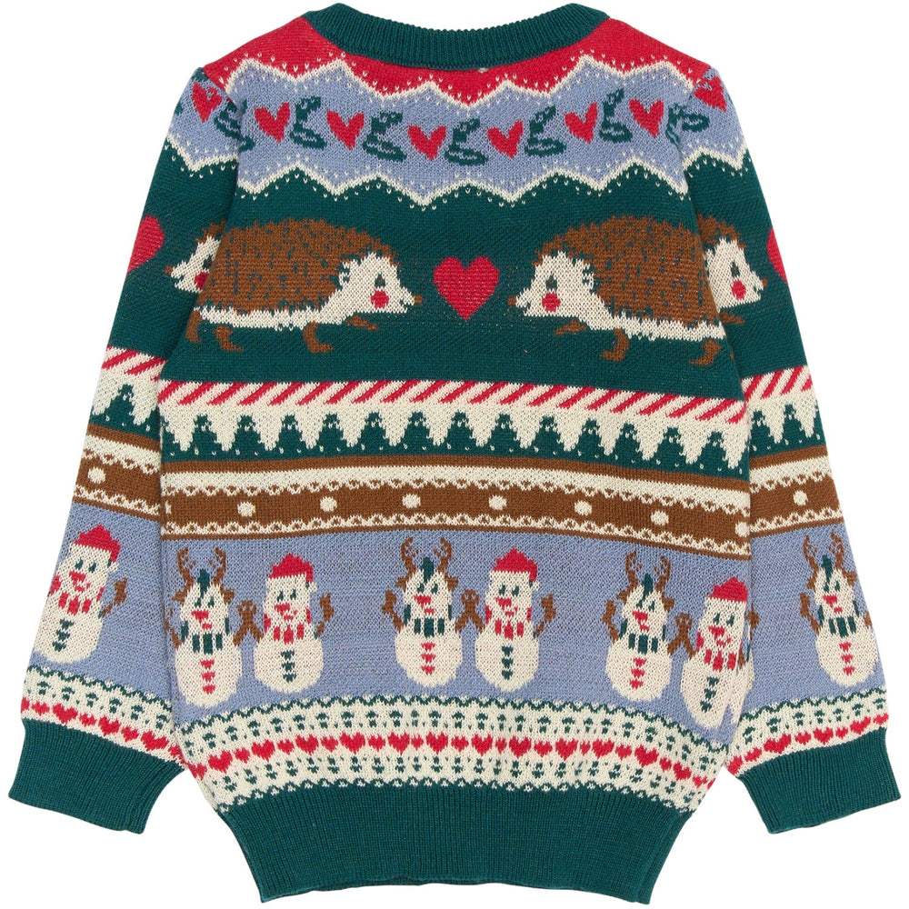 Skab magiske øjeblikke i vinterkulden med denne farverige julesweater fra THE NEW Siblings. Sweateren er præget af livlige julemotiver som pindsvin, hjerter og snemænd, der tilfører et legende touch. Fremstillet i en blød strik sikrer den varme og komfort, mens ribkanter på nakke, manchetter og søm bidrager til en optimal pasform. Ideel til både festlige lejligheder og afslappede vinterdage.