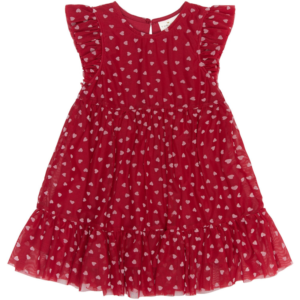 Denne charmerende kjole fra THE NEW Siblings er designet til at bringe glæde ved enhver festlig begivenhed. Fremstillet i blød, GOTS certificeret økologisk tyl, prydet med et sødt hjerteprint, garanterer den optimal komfort og stil. Flæsedetaljerne ved ærmerne og kjolens kant tilføjer et legende touch, mens den udvidede nederdel sikrer fri bevægelse. Perfekt til både legeaftaler og festdage.