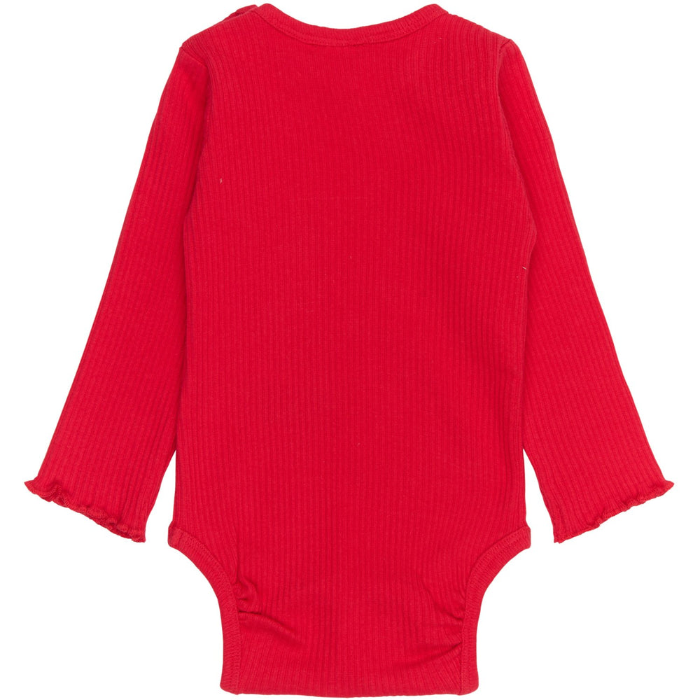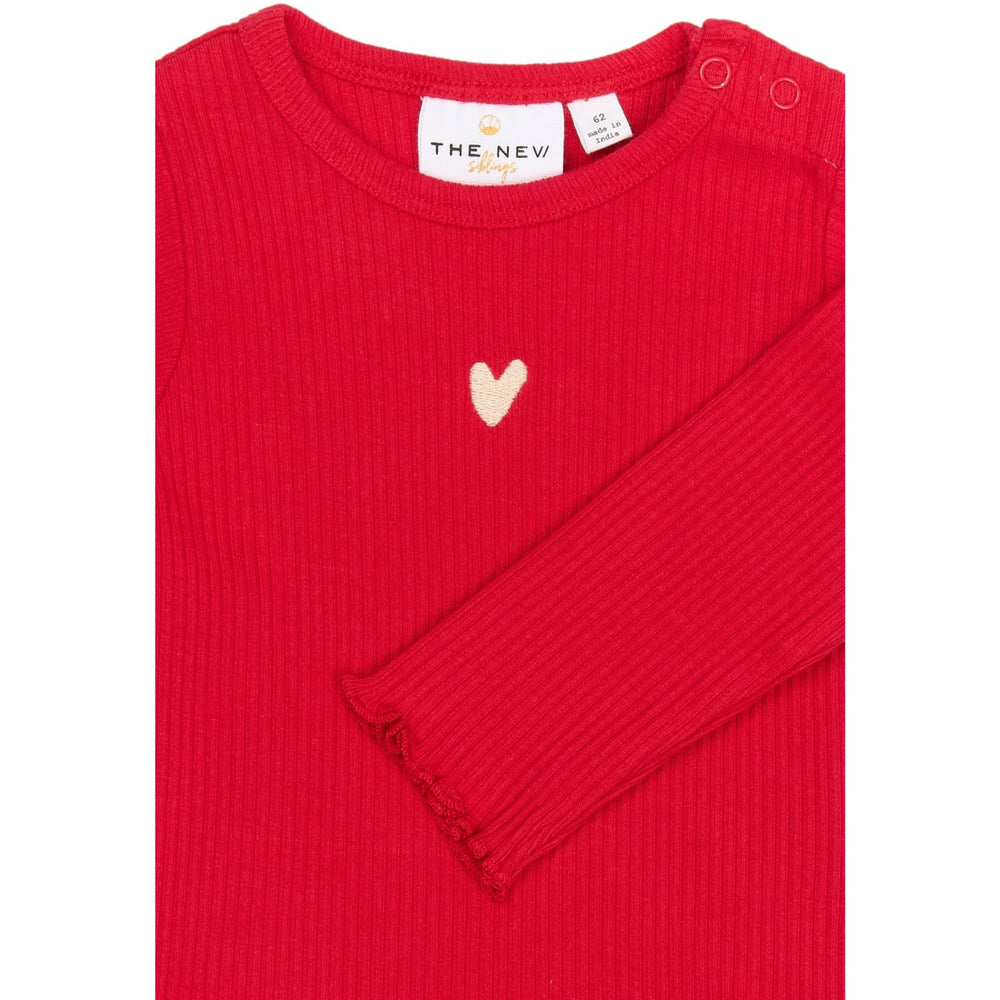 Den langærmede body fra THE NEW Siblings inviterer til hverdagskomfort og stil. Fremstillet i økologisk GOTS-certificeret bomuld sikrer den både blødhed og holdbarhed. Den charmerende design præges af lange ærmer med flotte flæsekanter, samt et sødt hjerteaftryk på brystet. Funktionelle trykknapper ved skulderen og i bunden gør påklædningen let og bekvem. Ideel til leg og afslapning, kombinerer denne body komfort med funktionalitet og stilfuldt design.