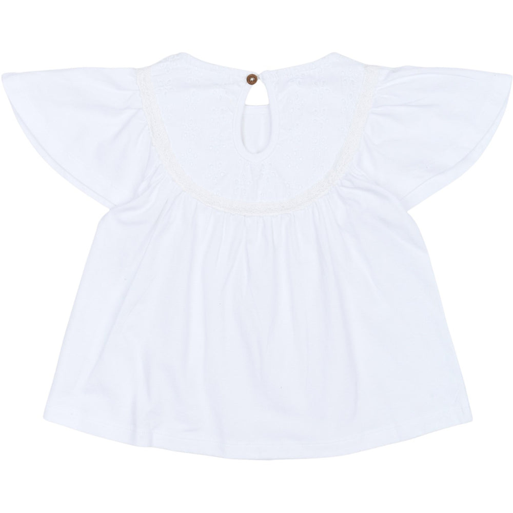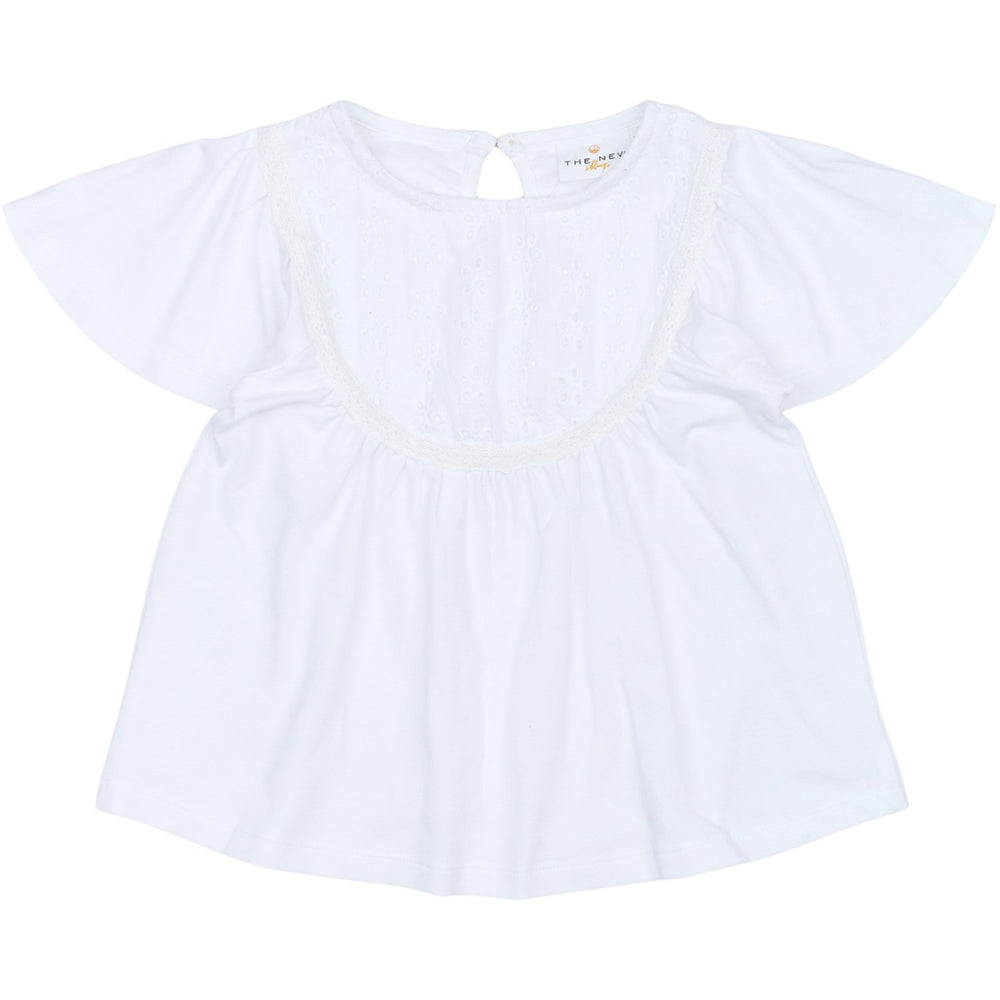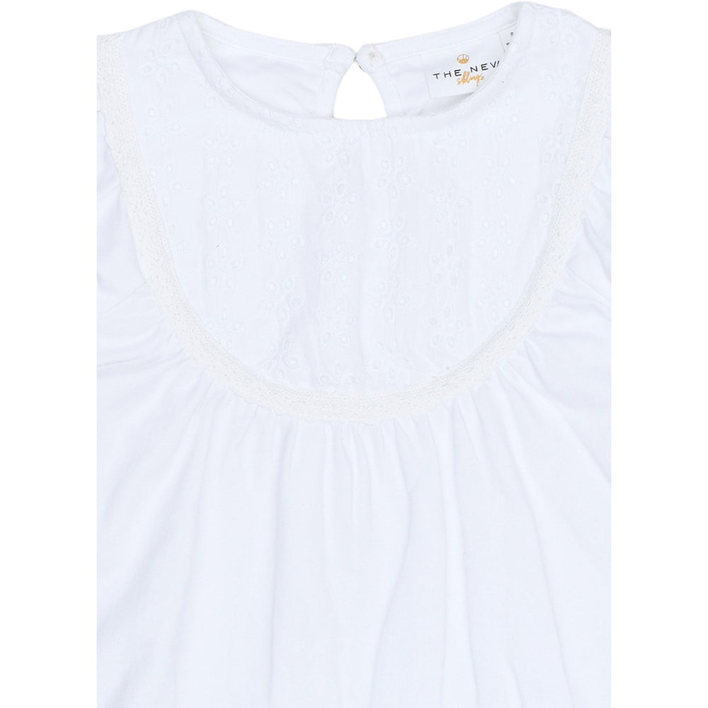 Denne kortærmede top fra THE NEW Siblings er udsmykket med fine blondedetaljer, der tilføjer en charmerende elegance. Med sin almindelige pasform og runde halsudskæring sikrer den både stil og komfort. Toppen, der er ideel til både fester og hverdagsbrug, er forsynet med en praktisk slids og knaplukning bagpå, hvilket gør den let at tage på og af.