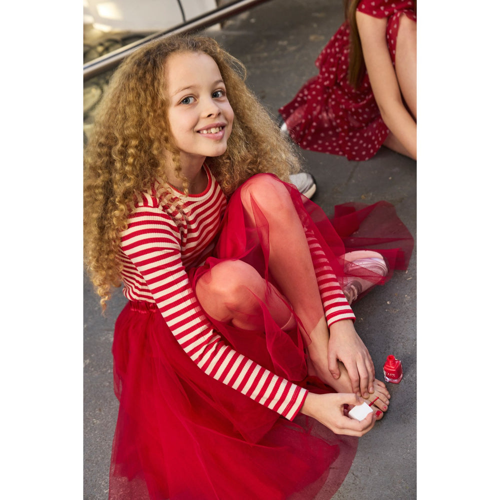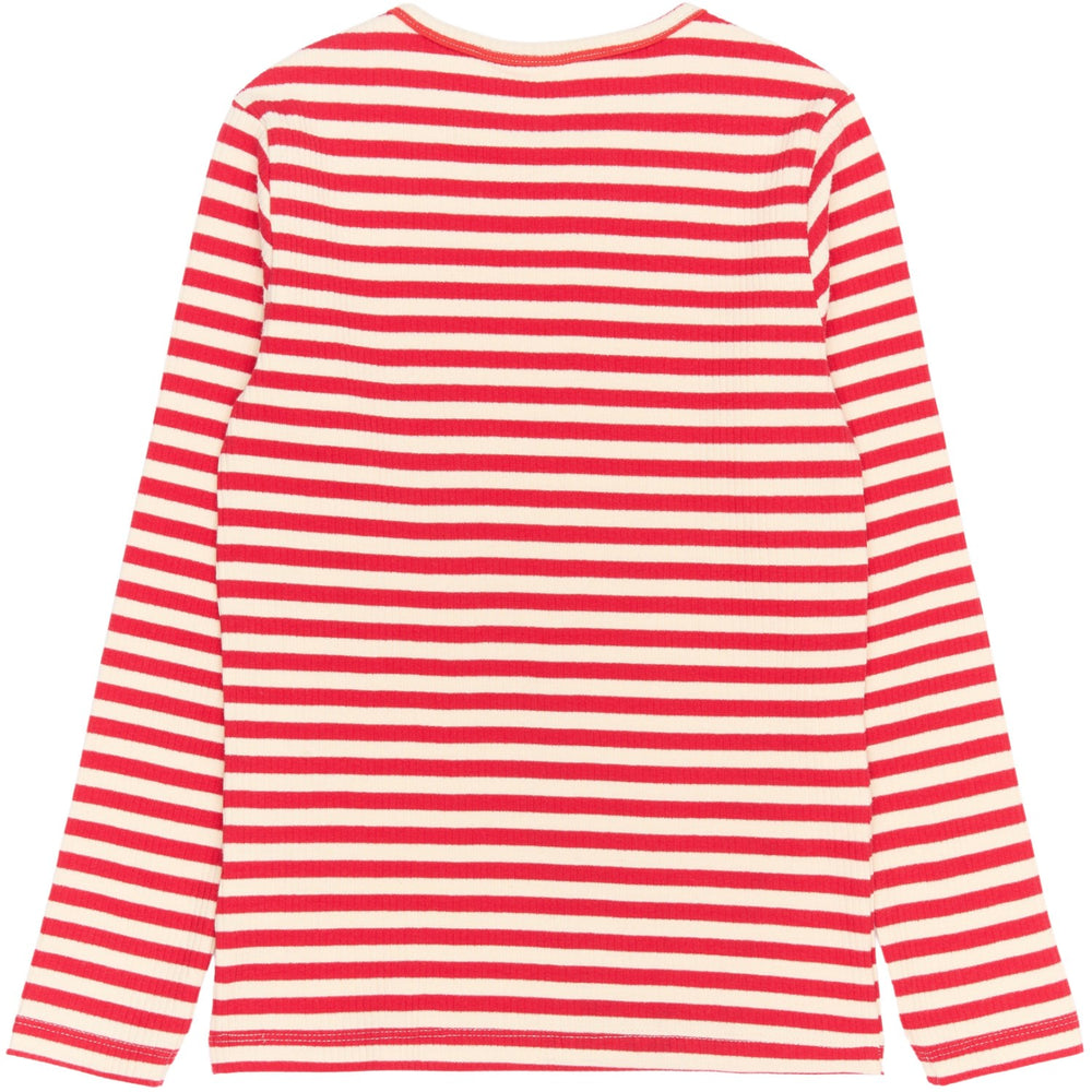 Forkæl dit barn med denne behagelige langærmede bluse fra THE NEW. Det klassiske rødstribede design er ikke alene tidløst, men også alsidigt for enhver anledning. Blusen, der er fremstillet i GOTS-certificeret økologisk bomuld, sikrer både komfort og kvalitet. Med sin runde halsudskæring og ribstrikkede materiale tilbyder den en almindelig pasform, der egner sig godt til både hverdagsbrug og særlige lejligheder.