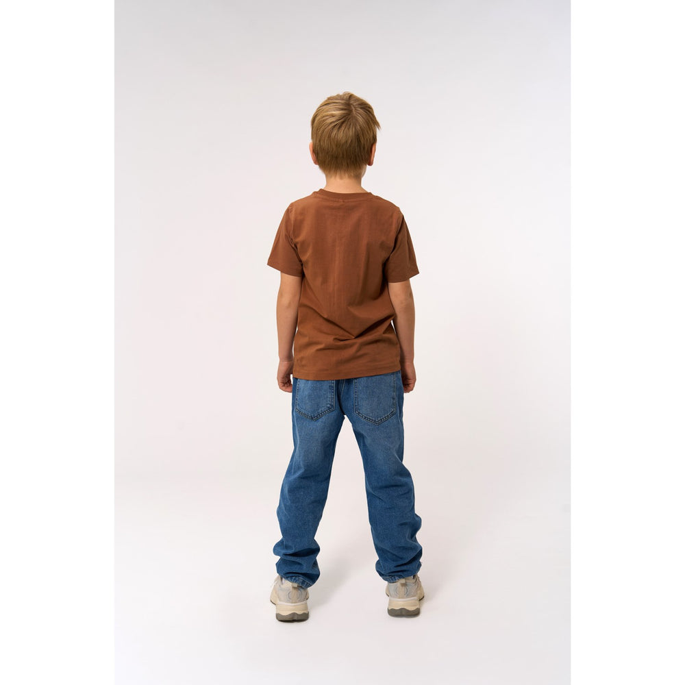 Denne charmerende brune t-shirt fra THE NEW er designet til komfort og stil. T-shirten har et iøjnefaldende frontprint med ordene "Liberate" og "Free Soul", der tilfører et unikt og friskt udtryk. Fremstillet i GOTS-certificeret økologisk bomuld, sikrer den både miljøvenlighed og blødhed mod børnehuden. Den løse pasform og den runde halsudskæring garanterer komfort hele dagen, hvilket gør den ideel til leg og læring.