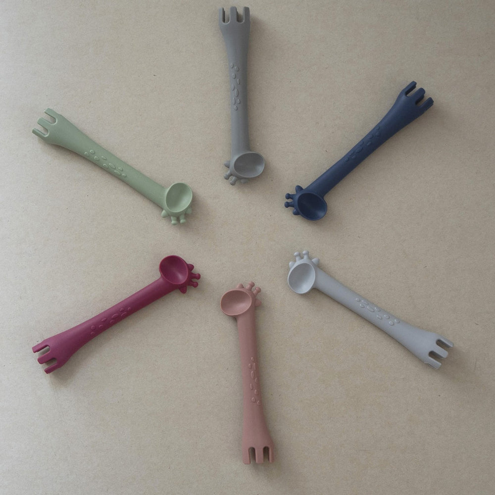 Gør din lille ones spisetid til en mere behagelig og sikker oplevelse med Tiny Tot Grey Begynderske i silikone. Dette bestik er designet til at støtte barnets første færdigheder med fast føde, og dens innovative 2-i-1 design med integreret gribedel hjælper med at lære dit barn at bruge en gaffel. Fremstillet af 100% LFGB fødevaregodkendt silikone, er denne ske både skånsom mod barnets tænder og gummer og blid mod huden. Med sit lange skaft kan både voksne og børn nemt holde om skeen, hvilket fremmer selvstændighed ved måltiderne. Let at rengøre, tåler maskinopvask og kan steriliseres ved kogning. Ideal til børn fra 4 måneder.