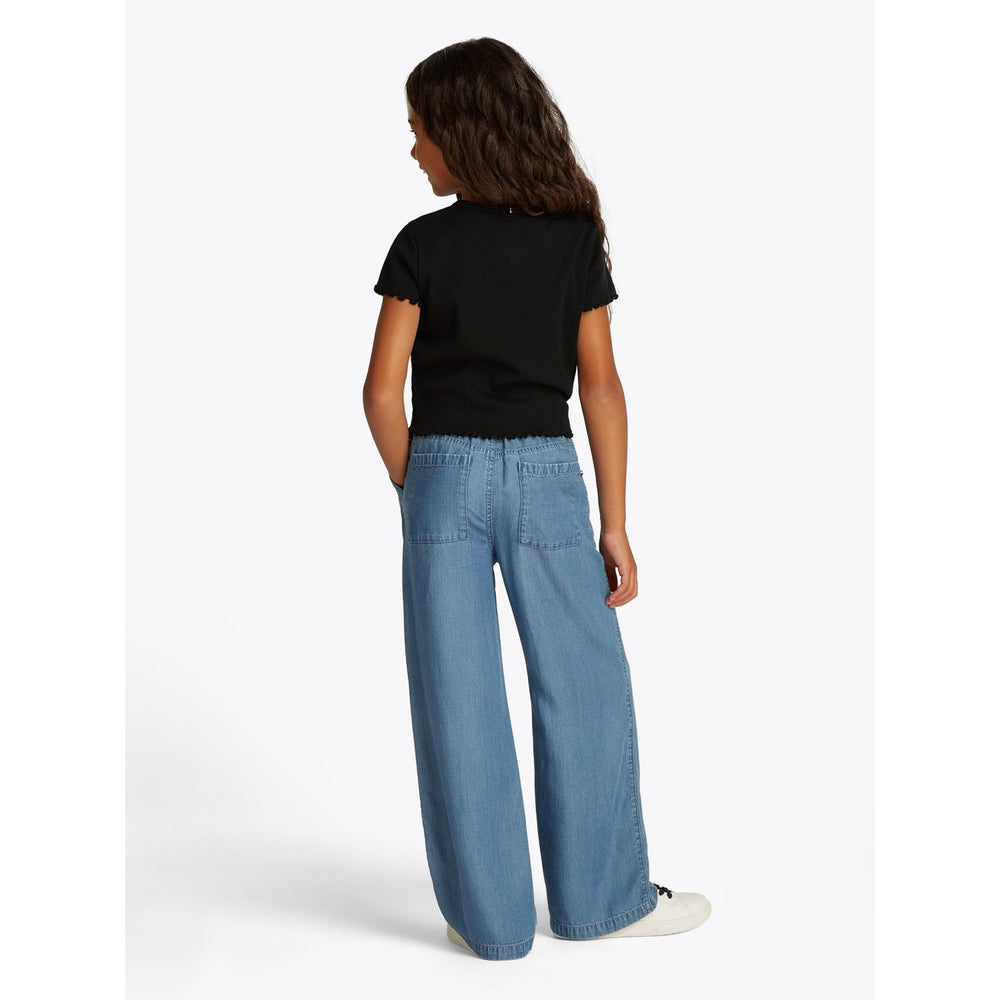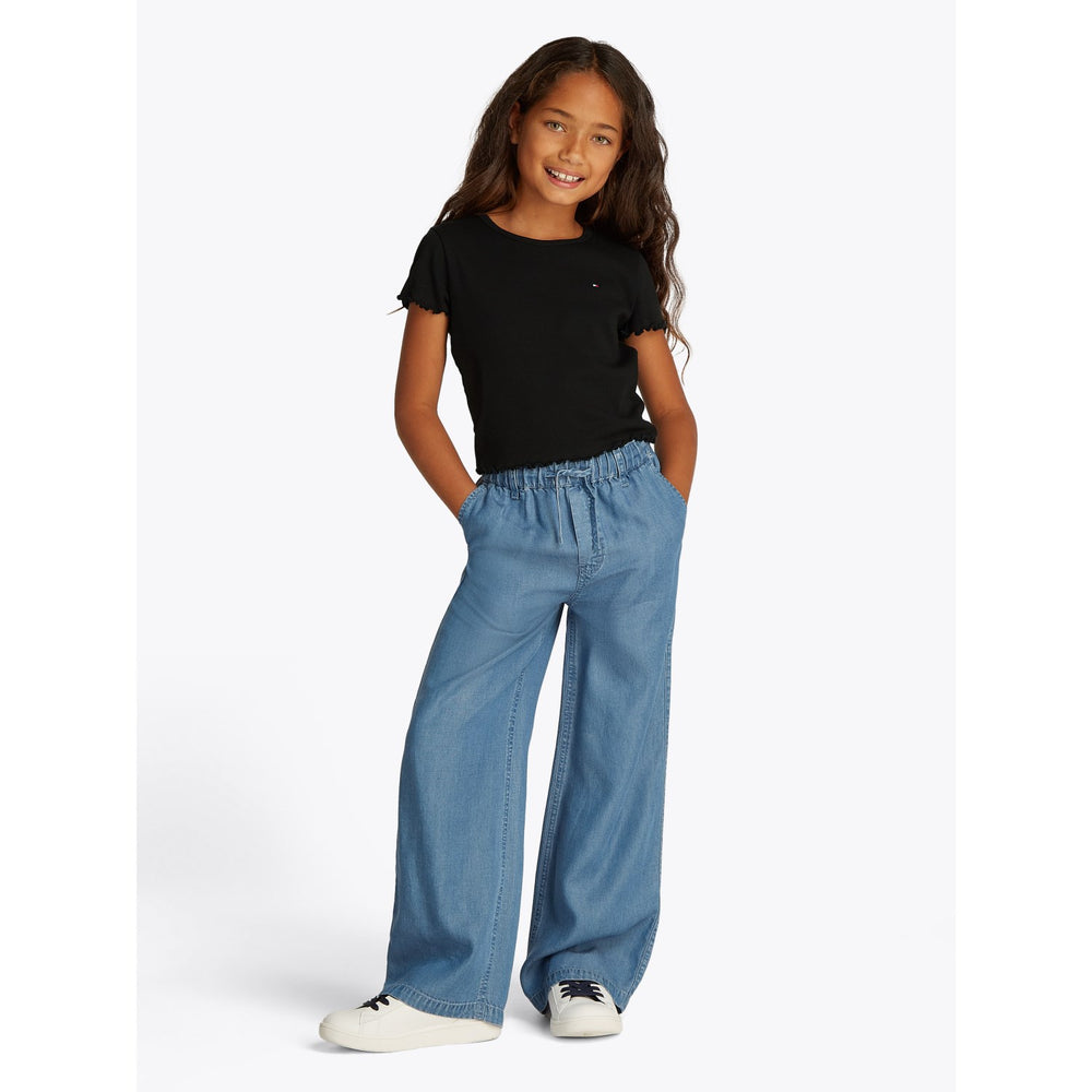 Denne sort ribbede T-shirt fra Tommy Hilfiger er ideel til børns hverdagsgarderobe. Fremstillet i blød økologisk bomuld sikrer den både komfort og holdbarhed. Det klassiske design og den subtile branding giver et tidløst look. Perfekt til både leg og afslappet brug. T-shirten kan nemt vaskes i maskinen.