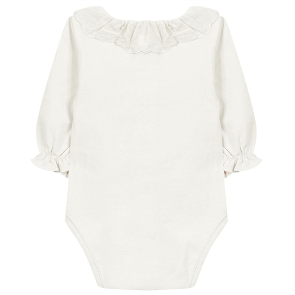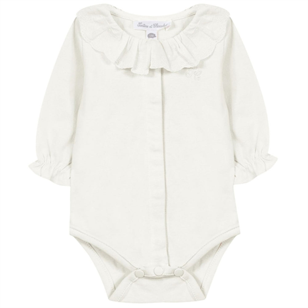 Blødheden af Tartine et Chocolat Nacre flæse body gør den perfekt til dit barns følsomme hud. Fremstillet af økologisk bomuld, sikrer denne bodystocking åndbarhed og holdbarhed. Med sit elegante design og subtile flæsedetaljer i en mild nacrefarve, tilbyder den stil samt komfort. Passer ideelt til hverdagsbrug og særlige anledninger, og er let at vedligeholde.