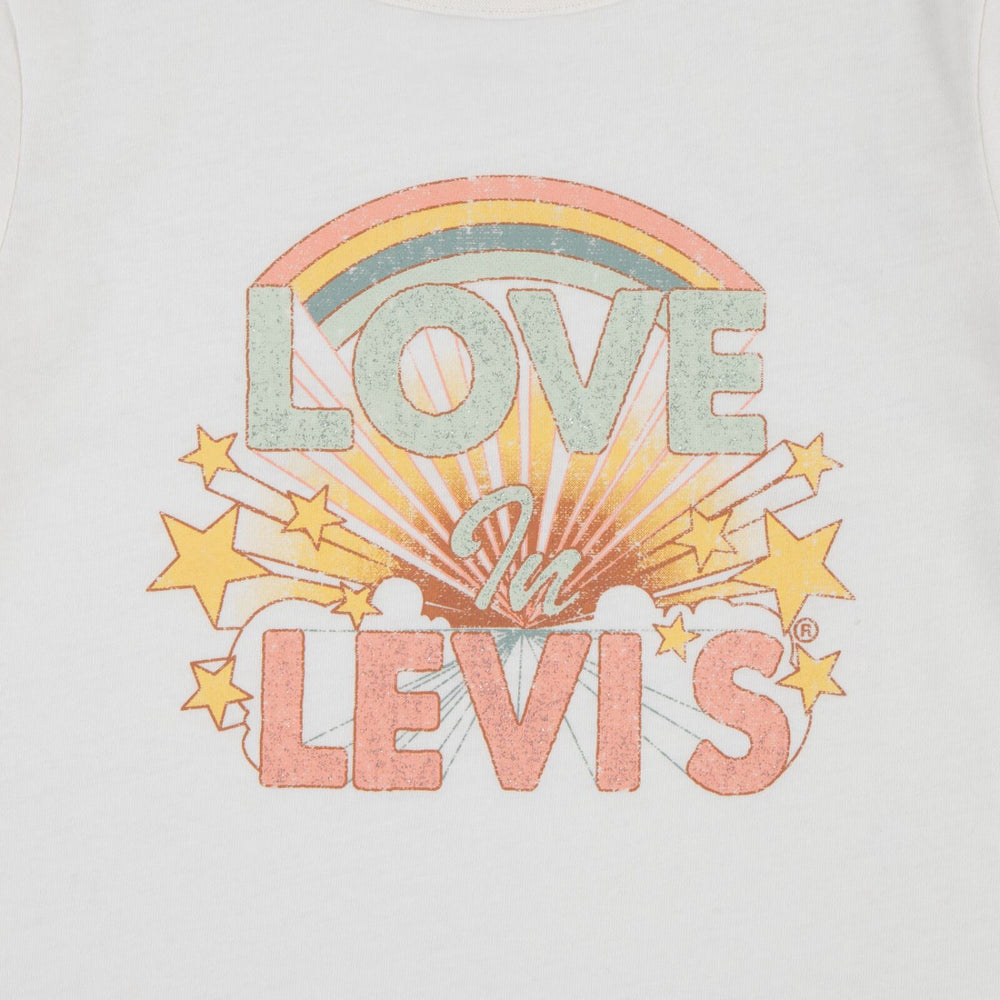 Denne charmerende Levi's Gardenia Dobbelt Cuff Tee er perfekt til børns daglige eventyr. Fremstillet af blød økologisk bomuld, sikrer T-shirten komfort hele dagen. Designet med dobbelte manchetter og et livligt mønster giver et stilfuldt touch, mens den nemme pasform giver god bevægelsesfrihed. T-shirten er let at vedligeholde og holder til gentagen vask.