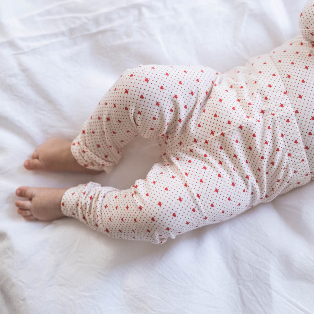 Med et smil og legeklar komfort præsenterer vi That's Mine Lots Of Love Red Elois Leggings. Disse leggings er fremstillet af en blanding af økologisk bomuld og modal, hvilket sikrer en uovertruffen blødhed. Den perfekte strækbarhed giver frihed til bevægelse, ideelt til kravlen og dans. Elastikken i taljen forstærker pasformen, så de små kan føle sig komfortable og støttede.