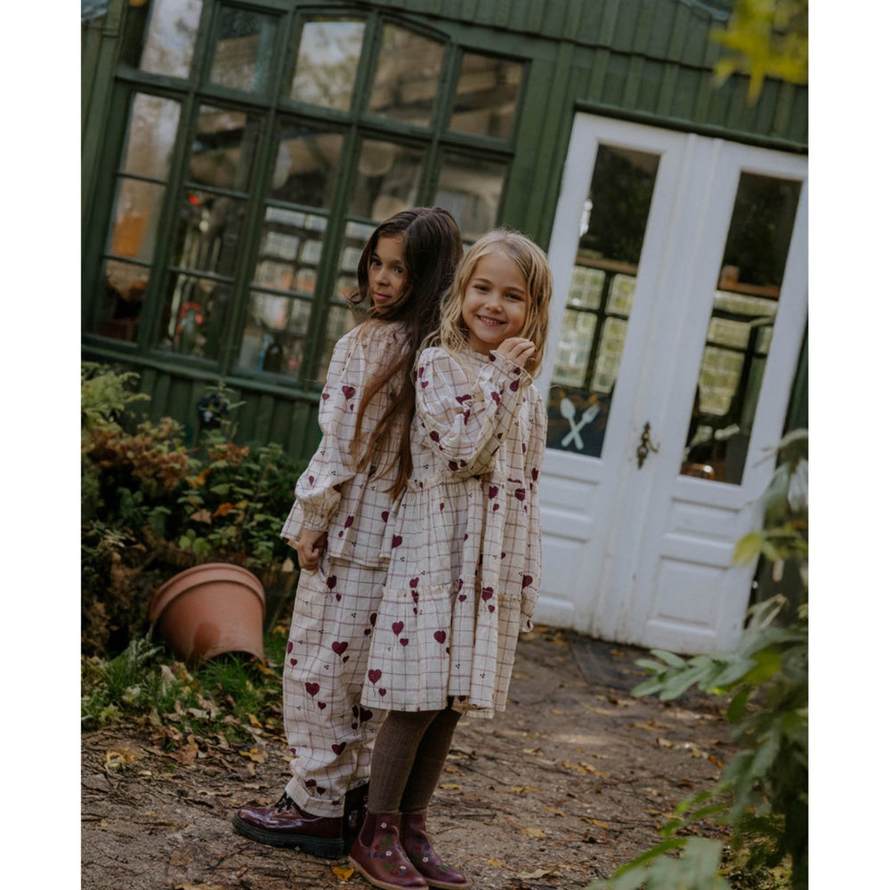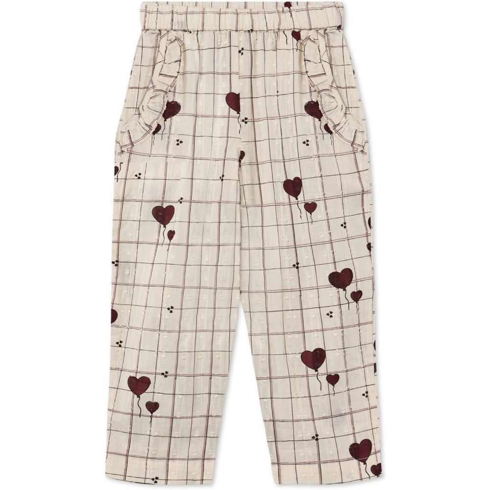 Skønne Fliink Sandshell Heart Aop Ilove bukser er fremstillet i 100% blød bomuld, der garanterer dit barns komfort. Det charmerende ternet og hjerteballonprint tilføjer et legesygt twist, mens de feminine flæsekantede lommer på siderne byder på både stil og funktionalitet. Buksernes taljebånd er justerbart, hvilket sikrer en perfekt pasform. Plejeinstruktioner: Maskinvask ved 30°C på skånsomt program, lav temperatur strygning anbefales for at bevare buksernes ideelle tilstand.