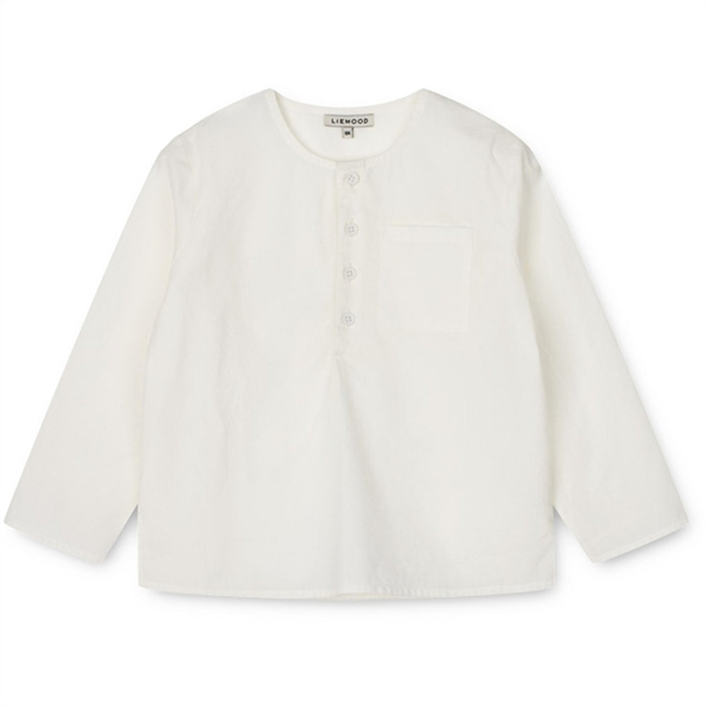 Den kraveløse Liewood Houston Skjorte i Crisp White er et perfekt valg for sommerens garderobe. Skjorten er designet i en pullover-stil, der kombinerer afslappet elegance med praktisk komfort. Fremstillet i 100% økologisk vævet bomuld, sikrer den både åndbarhed og lethed. Skjorten er udstyret med en 3-knaps placket foran og en praktisk brystlomme. Sidernes slidser tilføjer fleksibilitet til pasformen, hvilket gør den ideel til at style løst med både shorts og bomuldsbukser. Den enkle, hvide farve og det tidløse design gør den alsidig til enhver lejlighed.