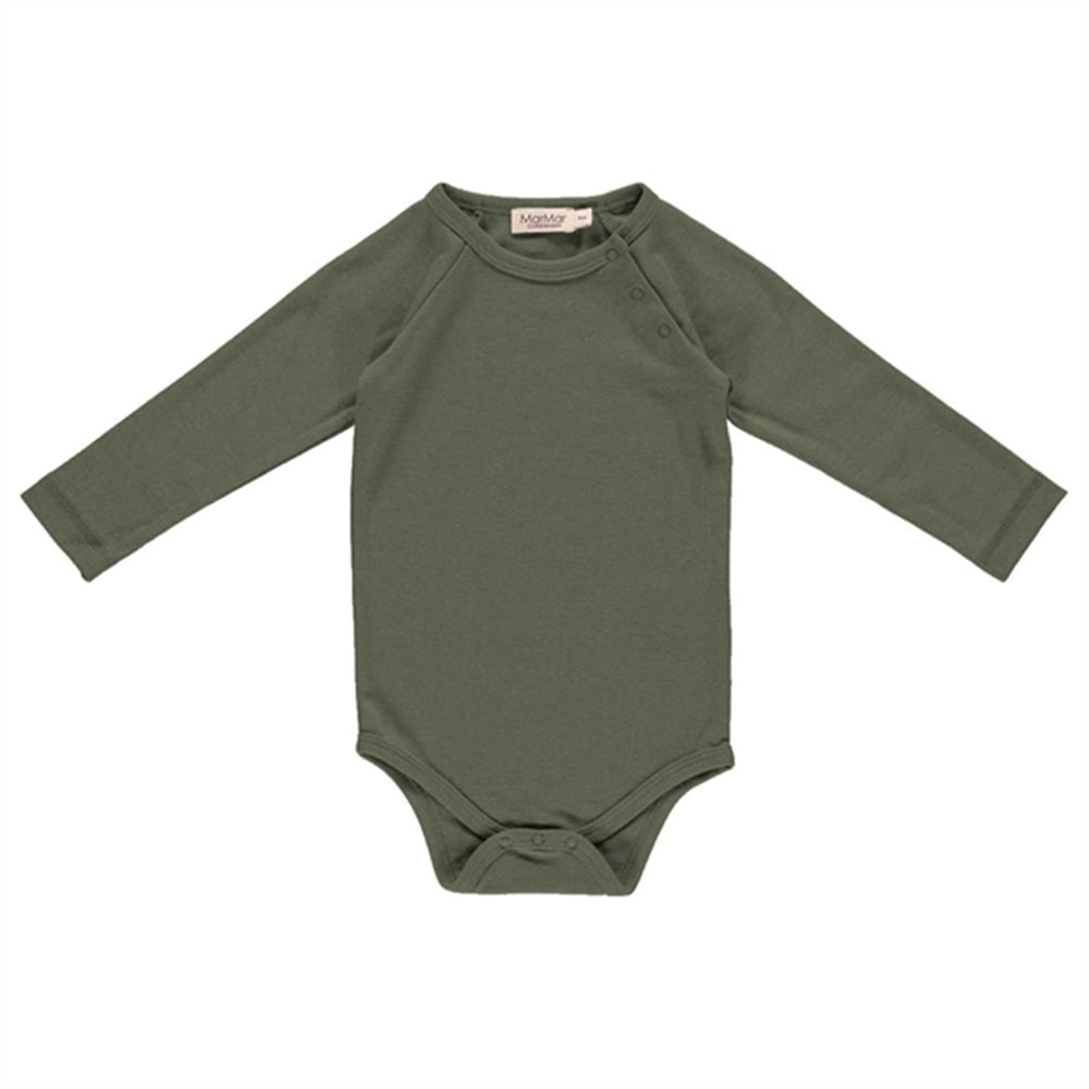 Denne elegante, grønne MarMar Hunter Baselayer body er perfekt til dit barns garderobe. Fremstillet af ekstremt blød og åndbar kvalitet, sikrer den komfort hele dagen. Praktiske trykknapper ved skulderen og forneden gør den nem at tage på og af. En ideel kombination af stil og funktionalitet.
