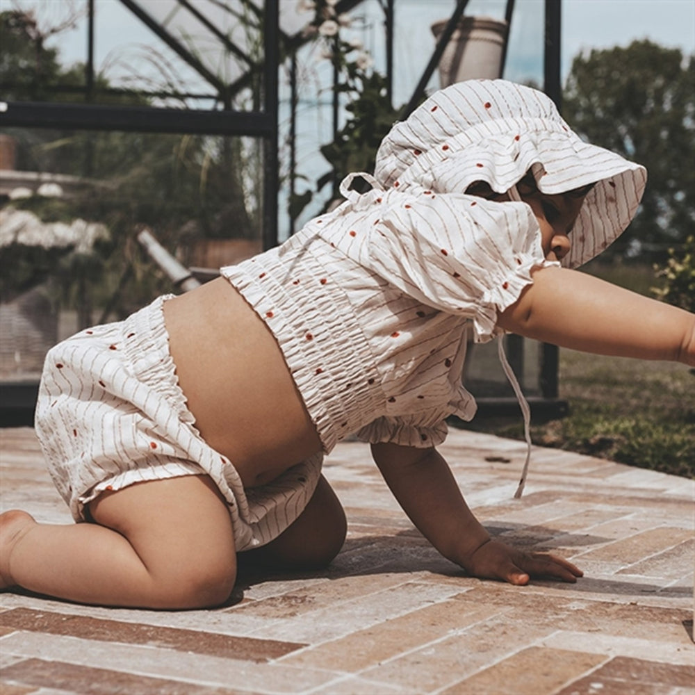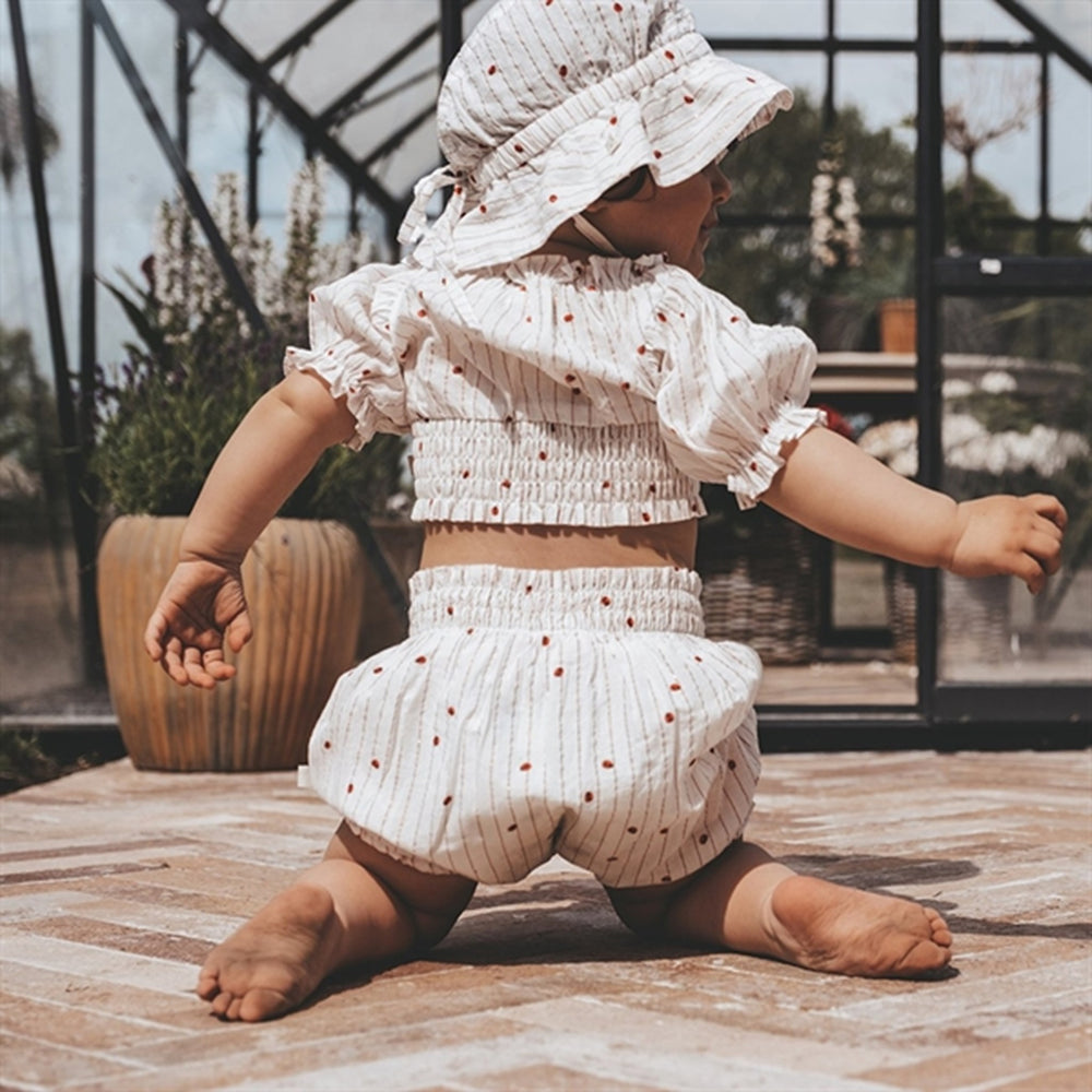 Disse charmerende Klara Bloomers fra That's Mine er fremstillet i blødt og behageligt materiale, designet med søde prikker og delikate volangdetaljer. Med en elastisk talje sikres en perfekt pasform, og det lette stof gør dem ideelle til både leg og afslapning. Bloomers er tilgængelige i flere størrelser, perfekt til småbørn.