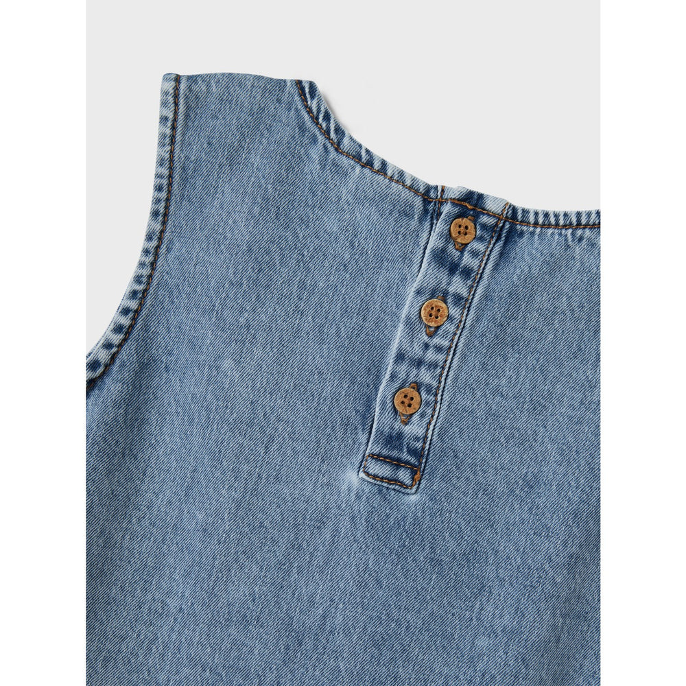 Gør dit barns garderobe sommerklar med 'Name It Medium Blue Denim Amelia Denim Top'. Denne toppe kombinerer den slidstærke kvalitet af denim med et friskt og moderigtigt design. Med en behagelig og almindelig pasform, er denne ærmeløse top ideel til varme dage. Den runde hals og knaplukning sikrer let påklædning, mens sømdetaljerne tilføjer en charmerende finesse. Perfekt til hverdagsbrug og særlige anledninger.