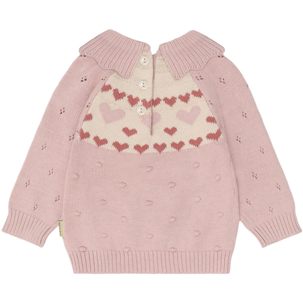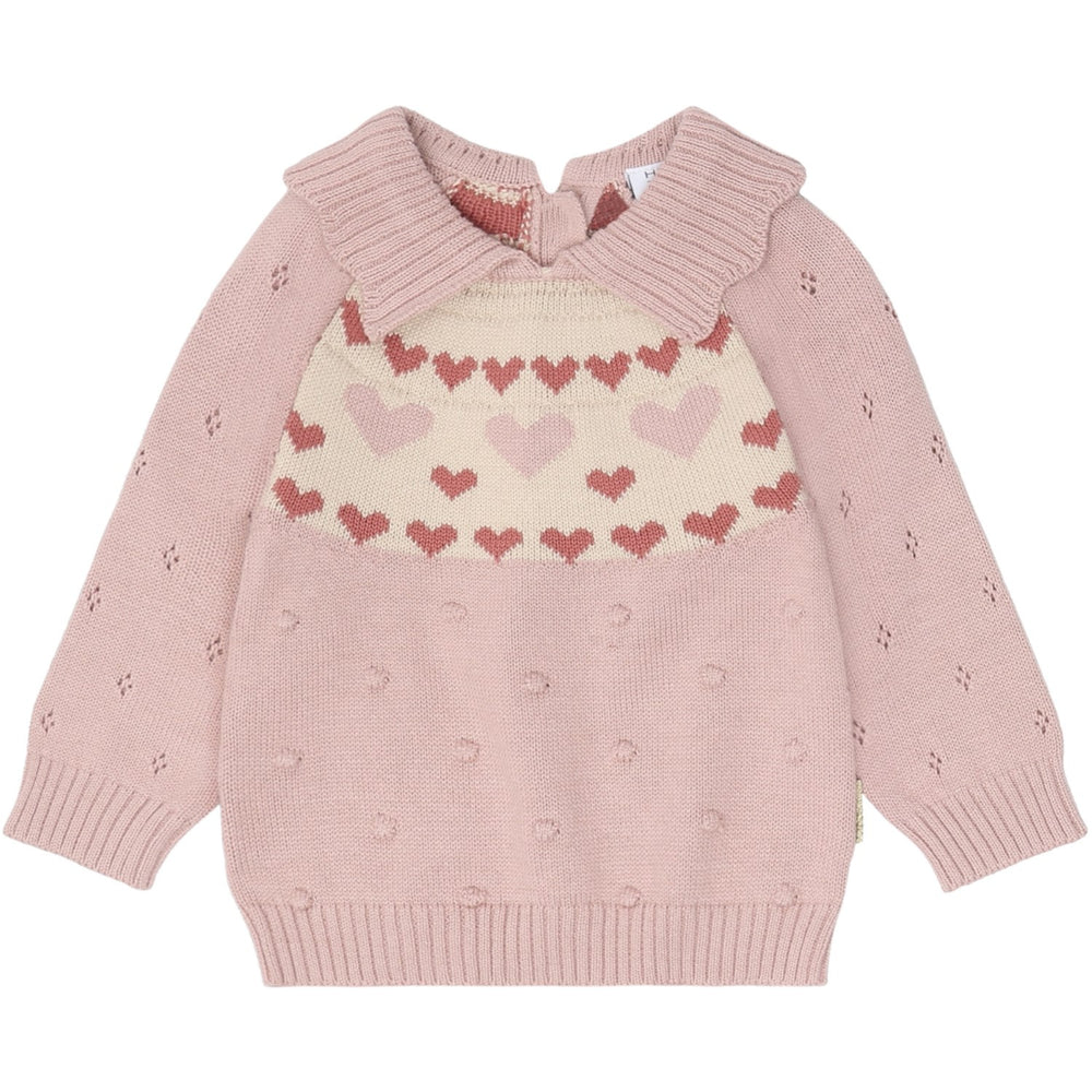 Denne charmerende cardigan fra Hust & Claire er prydet med et hjerteligt mønster, perfekt til enhver lille modebevidst. Fremstillet i en blød materialeblanding, sikrer den komfort hele dagen. Adobe Rose farven tilføjer et strejf af forår, mens det klassiske snit gør den ideel til både hverdag og fest. Let at vedligeholde, denne cardigan er en praktisk og stilfuld tilføjelse til børnegarderoben.