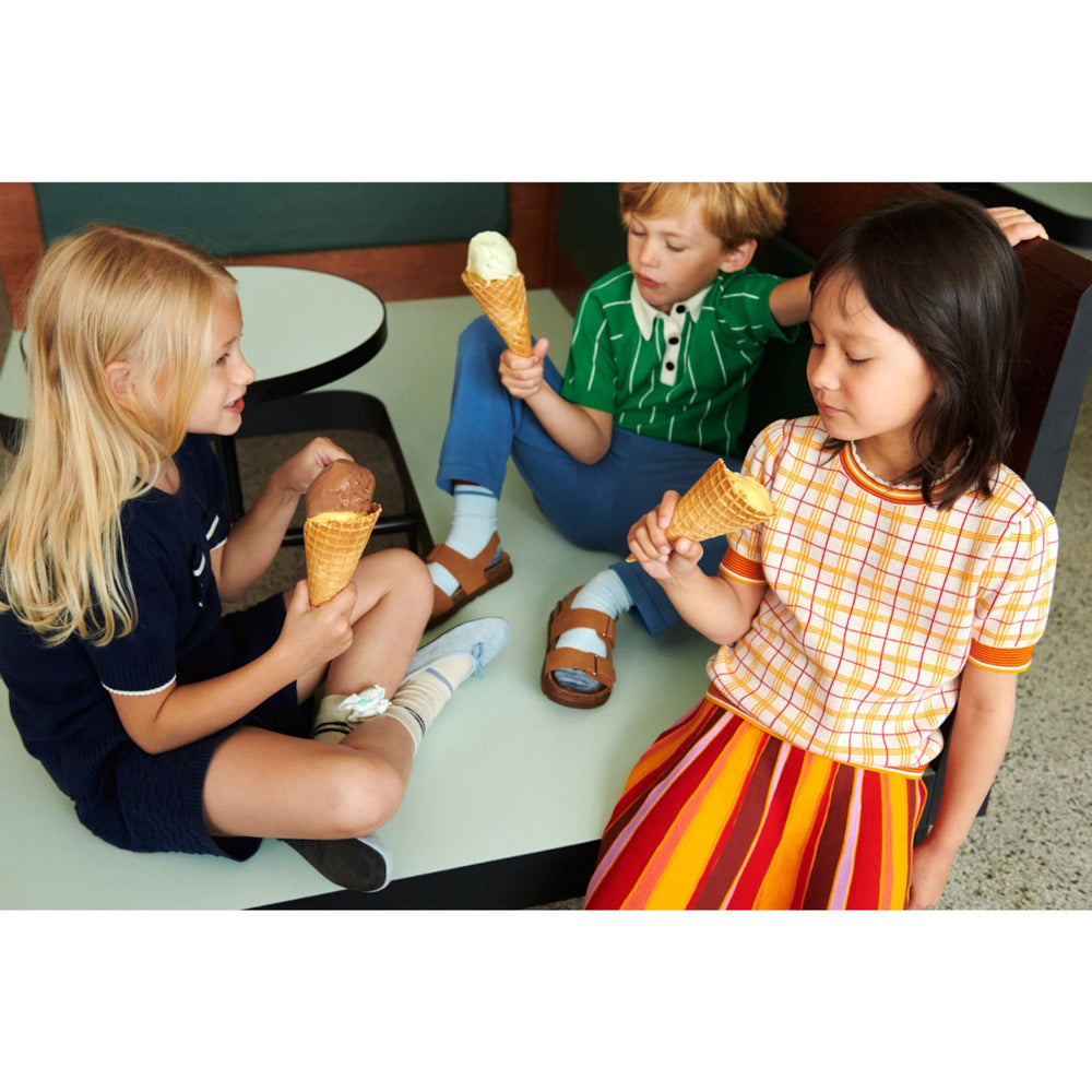 Gør garderoben både stilfuld og bevidst med denne charmerende poloshirt til børn. Fremstillet af 100% certificeret økologisk bomuld, tilbyder denne polo ekstra blødhed og sikrer en behagelig pasform for din lille. Den har et tidløst design med smalle lodrette striber, korte raglanærmer og en kontrastfarvet skjortekrave. Foran lukkes den med fine corozo-knapper, der er naturlige og fuldt biologisk nedbrydelige. Denne polo er ideel til både hverdag og særlige lejligheder, hvor børnene skal se ekstra pæne ud.