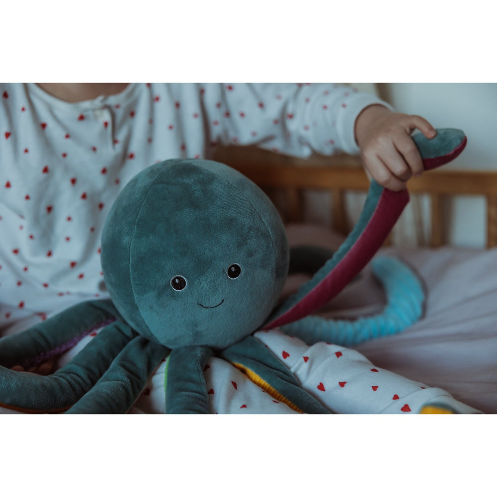 Let at transportere og vedligeholde, denne blæksprutte er en praktisk og elskelig følgesvend, der passer naturligt ind i dagligdagen og tilbyder trøst, når dit barn har mest brug for det.
