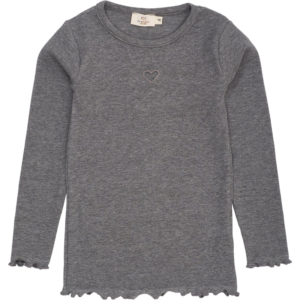 COPENHAGEN COLORS Grey Mel Modal Rib Ls Tee W. Heart Hole Pattern
