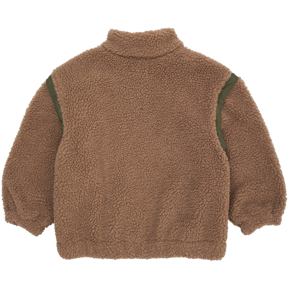 Denne praktiske bamsejakke fra COPENHAGEN COLORS er designet til de mindste. Med aftagelige ærmer og en blød fleeceforing sikrer jakken optimal varme og komfort på kølige dage. Lynlåsen foran gør det nemt for dit barn at klæde om. Den naturlige grønne farvekombination er stilren og alsidig, perfekt til enhver lejlighed.