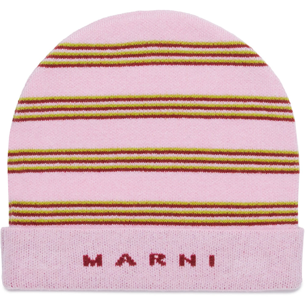 Denne charmerende hue fra Marni er fremstillet i blød og behagelig kvalitet, designet til at holde små ører varme med stil. Den lyse lilafarve og det attraktive mønster tilfører en sjov og moderigtig touch til ethvert børneoutfit. Perfekt tilpasset til børn, sikrer denne hue en komfortabel pasform og egner sig ideelt til daglig brug. Den er velegnet til maskinvask, hvilket gør vedligeholdelsen nem og bekvem.
