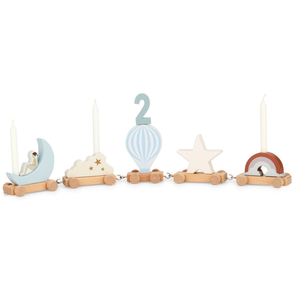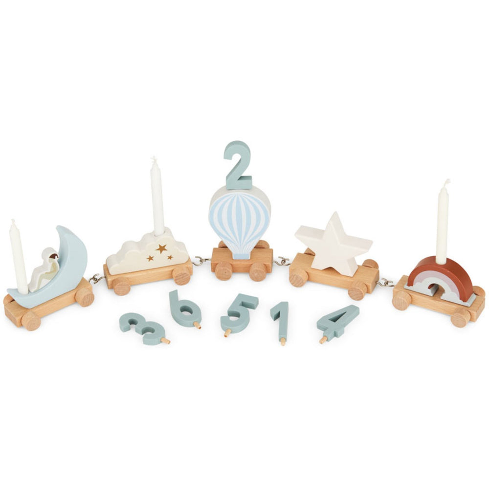 Giv fødselsdagsfesten et magisk strejf med Cam Cam Copenhagen Dreamland Fødselsdagstog. Dette smukke tog er lavet af FSC-certificeret træ og udsmykket med ikoniske, venlige figurer såsom en stjerne, sky, og regnbue. Nemt at samle med metalkroge, hver figur indfanger barnets fantasi og glæde. Inkluderer tal 1-6 til at ære hvert vækstår, hvilket gør det til en charmerende og holdbar tradition for børnefødselsdage. Det er sikker underholdning og en smuk dekoration, der lover at blive et kært minde i familiens samlinger.