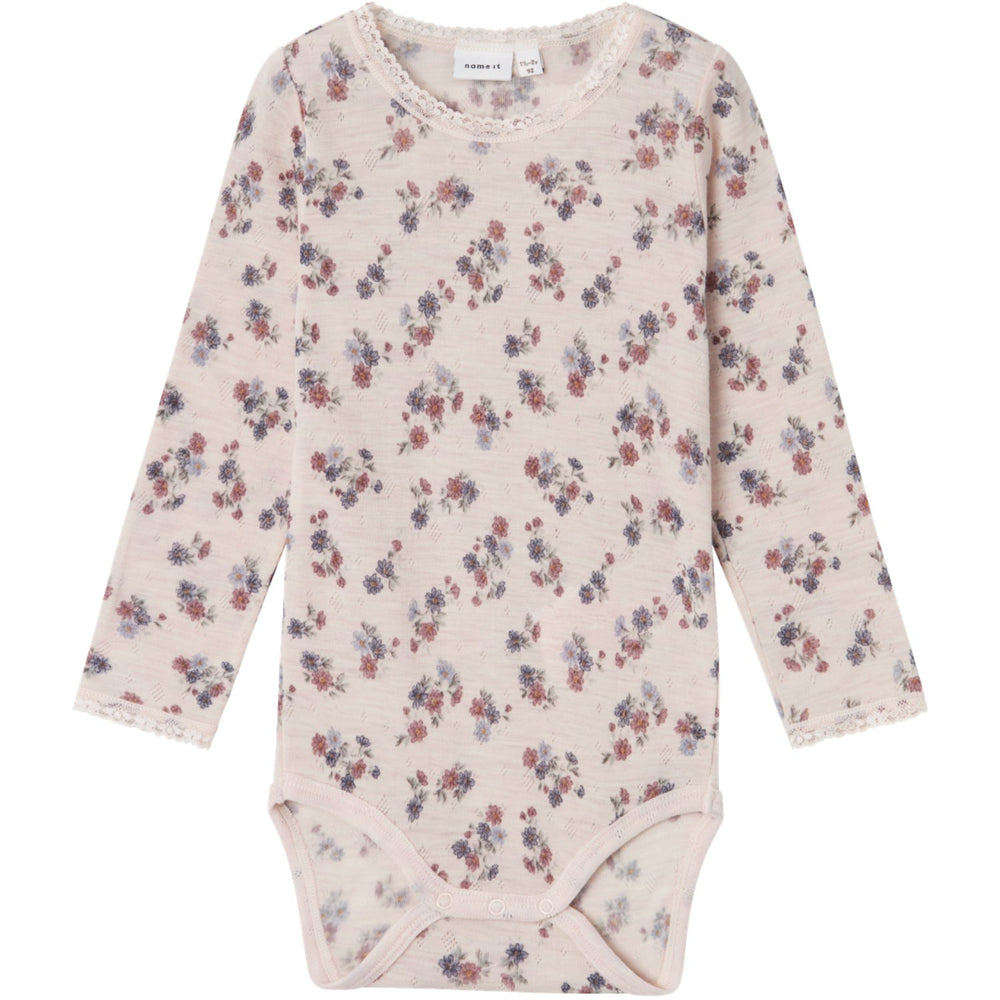 Opfrisk dit barns garderobe med denne behagelige og stilfulde bodystocking fra Name It. Modellen er i en blød nuance af lilla aske og er fremstillet med en nåledrop-teknik, der giver et delikat faldstingsmønster over hele overfladen. Denne bodystocking har lange ærmer og praktisk trykknaplukning, som gør påklædningen let. De fine blondedetaljer tilføjer et sødt og charmerende touch. Et ideelt valg til både hverdagsbrug og særlige anledninger, hvor komfort og stil går hånd i hånd.