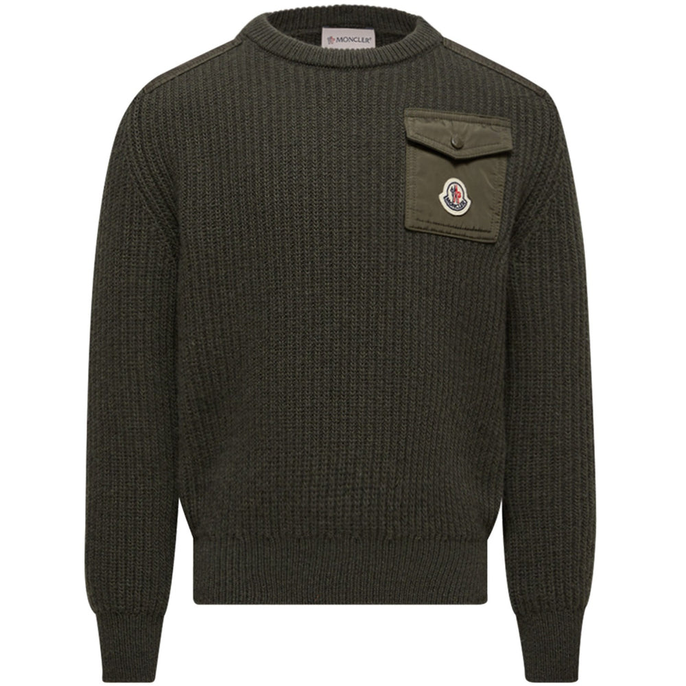 Denne børnetrøje fra Moncler er designet med en klassisk crew neck og fremstillet i blød karderet uld. Nylon på skuldrene tilføjer en unik teksturkontrast, og en praktisk nylonlomme med patch forstærker funktionaliteten. Det mellemtunge strik med brioche-sting sikrer både komfort og holdbarhed. Perfekt til hverdagsbrug i køligere vejr.