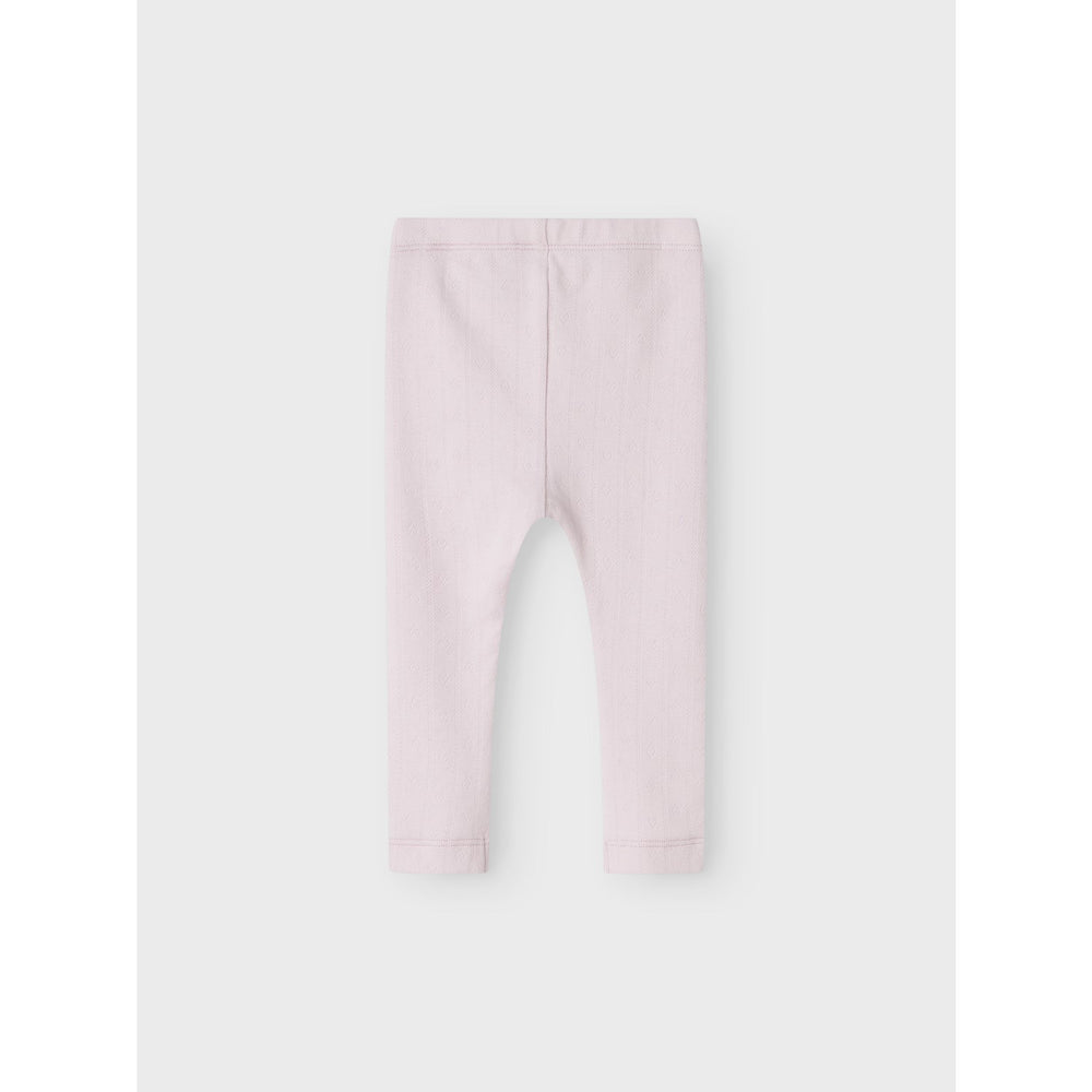 Gør hverdagen både nem og stilfuld for dit barn med Name It Light Lilac Dagnes Leggings. Disse leggings er fremstillet i blødt, strækbart materiale med et charmerende pointelle-strik, der tilfører et geometrisk og åbent mønster for en fin og elegant fremtoning. Designet med elastik i taljen sikrer en behagelig og almindelig pasform. Perfekt til leg og afslapning. Vær opmærksom på at holde dem væk fra ild.